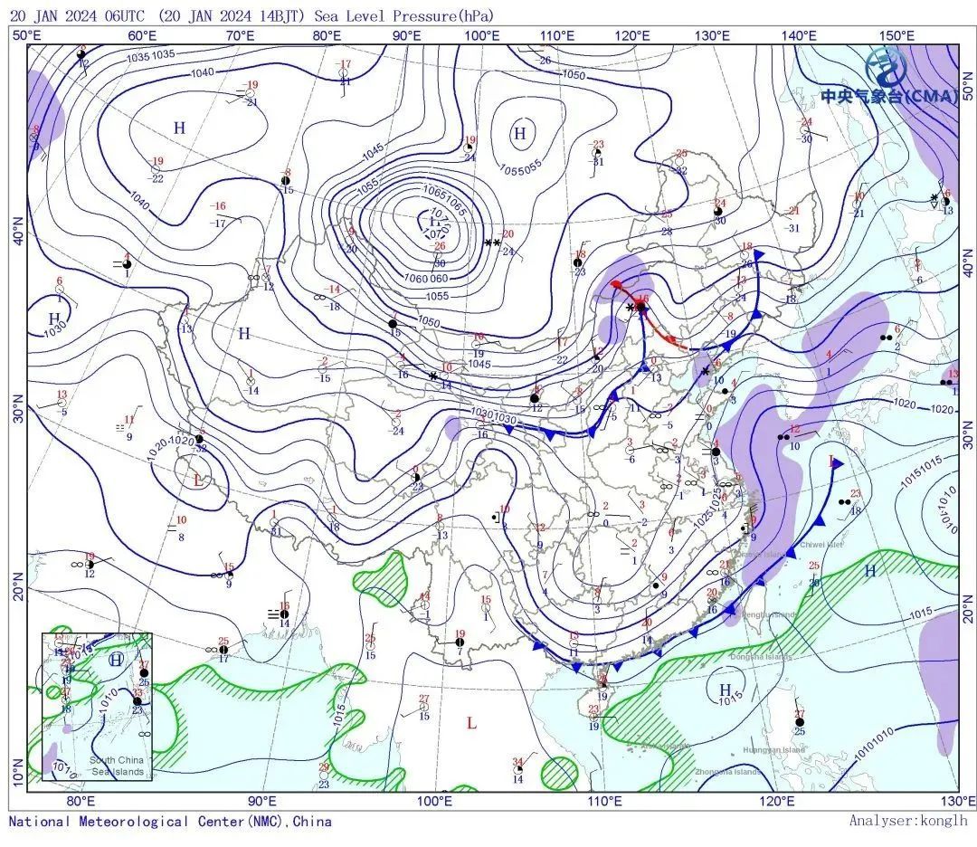 北方一股强冷空气正在南下,今天14点钟,它的前锋已经到达华北地区北部,预计明天傍晚开始影响本市,气温将明显下降,并伴有6-8级偏北大风,华东沿海海面自北向南先后有9-10级偏北大风出现。