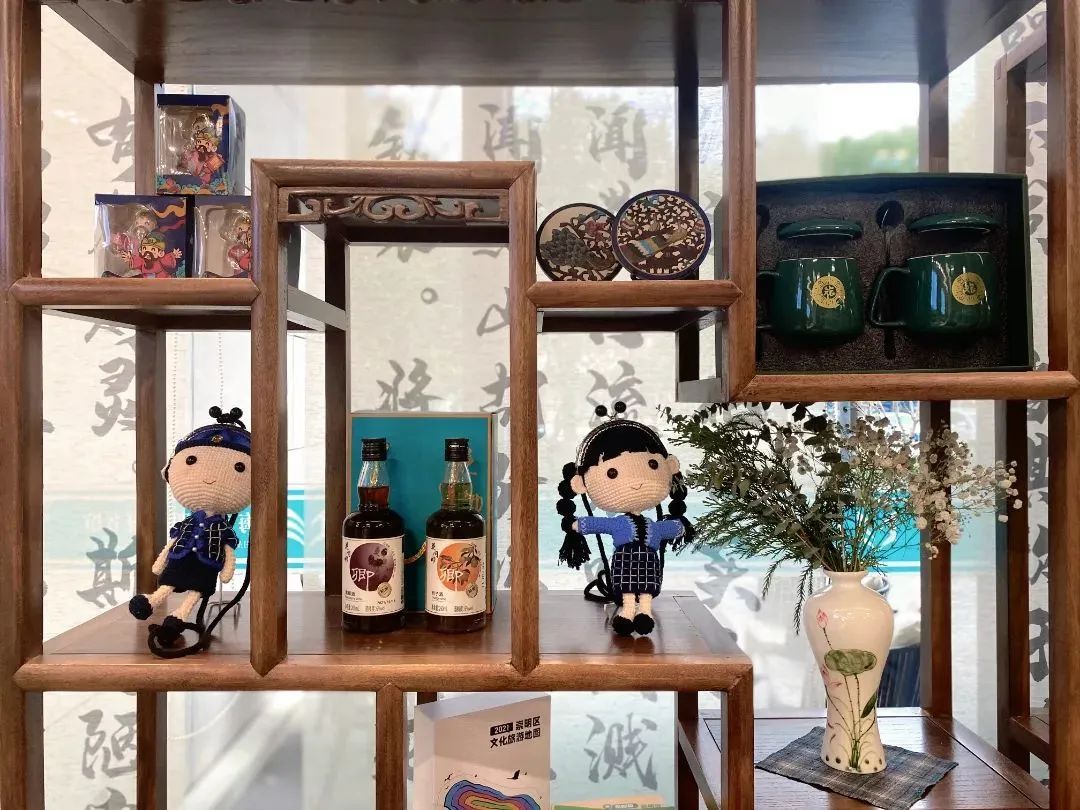 从图书馆的大门进入,就能看到明亮的咖啡店。素雅的简约风,整个空间明亮而通透,如果仔细留意,便会发现咖啡馆里的每个物件都极具设计感。用崇明学宫下飘落的银杏叶浇筑了地面,文艺清新;崇明非遗土布代替了桌布却多了点时光的味道;崇明文创产品展示架上尽是来自古瀛洲的心意。