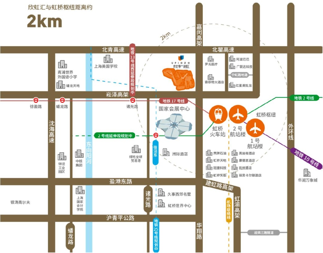 近期,小涞港河旁边新落座了一座造型独特的建筑,当夜幕降临,建筑外墙的灯光全部亮起,璀璨的灯光与河面相互映衬,流光溢彩。 这是由上实城开开发,位于新虹街道城中村“红星村”改造地块的配套商业项目“城开优享+欣虹汇”,集生态、人文、运动、节能环保、先进科技于一体,目前项目主体已完工。 “城开优享+欣虹汇”地处虹桥国际中央商务区核心区,距虹桥交通枢纽仅2公里距离,紧邻国家会展中心,南侧绿地与会展中心无缝衔接,别具一格的建筑设计,独特的∞型屋顶跑道与屋顶花园串联,提供了空中社交、运动的趣味创意空间。 该项目综合酒店、社区商业、总部办公、社区服务为一体,融合居住、商务、商旅场景,将为商旅客户、周边居民、办公人群营造便捷愉悦的生活、社交互动空间,打造面向国内外“城市会客厅”和高品质生活的社区商业样板区。商场总计配备487个停车位,包括72个充电车位。