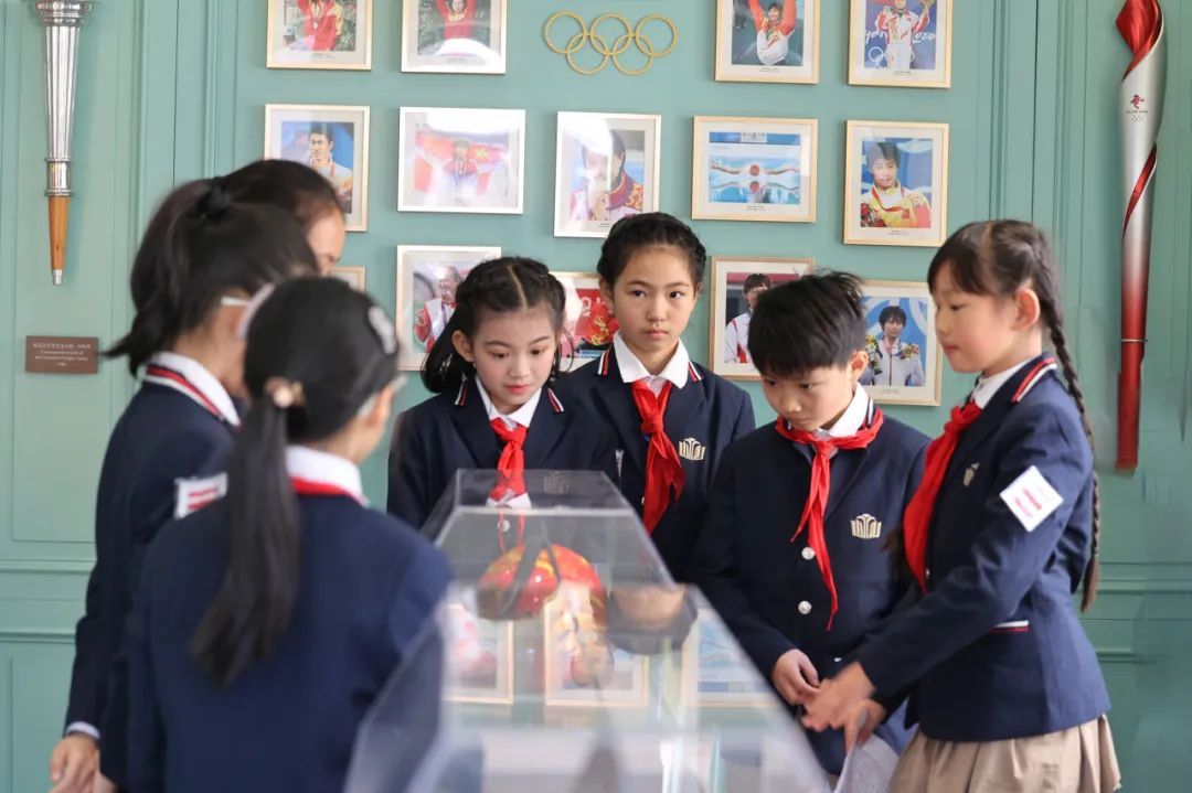 活动结束后,陶璐娜带领学生代表登上这辆移动的博物馆展车。车内有北京奥运会火炬、陈芋汐训练时穿的泳衣、钟天使比赛时佩戴的“凤鸣”头盔等珍贵藏品。