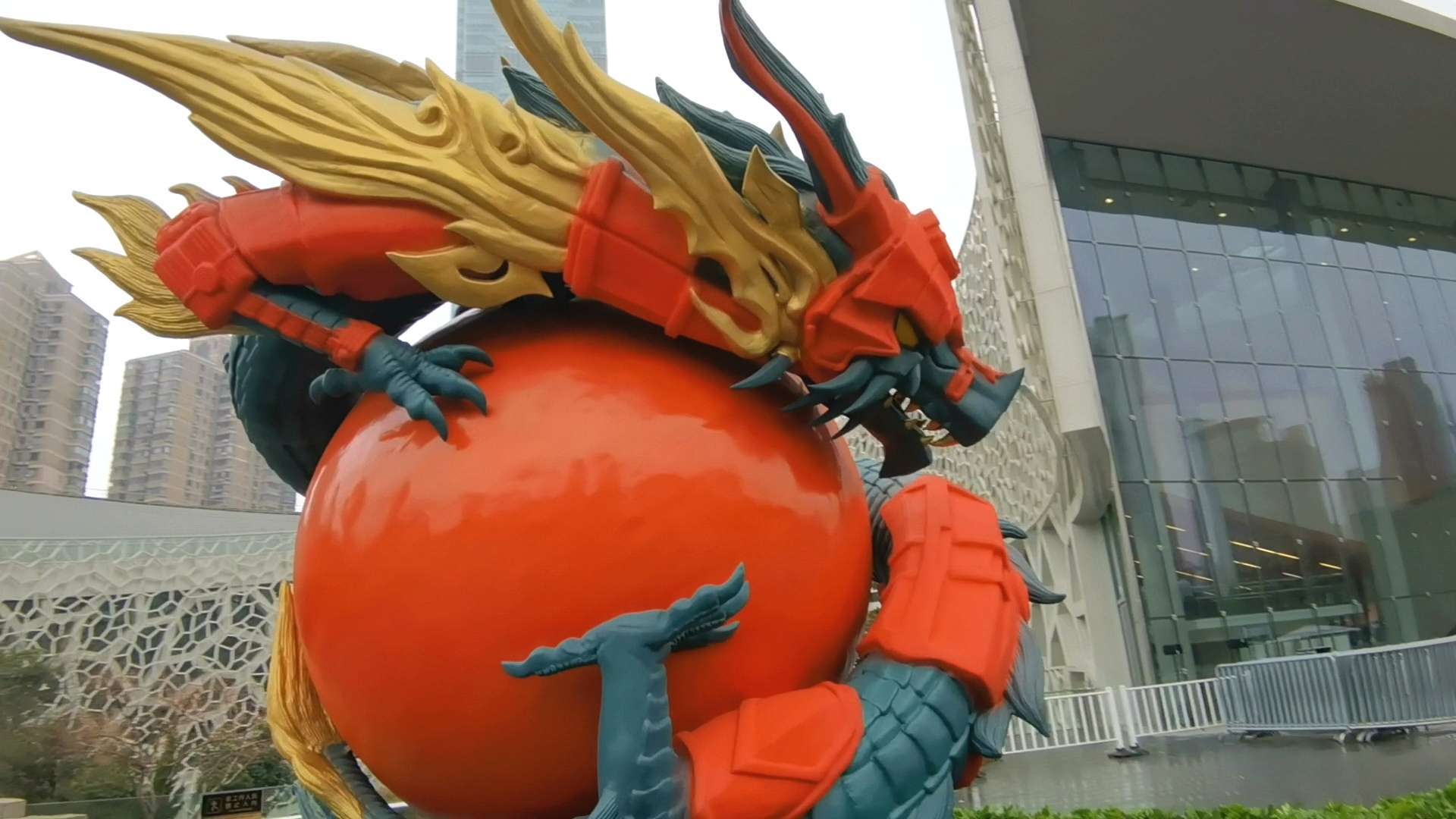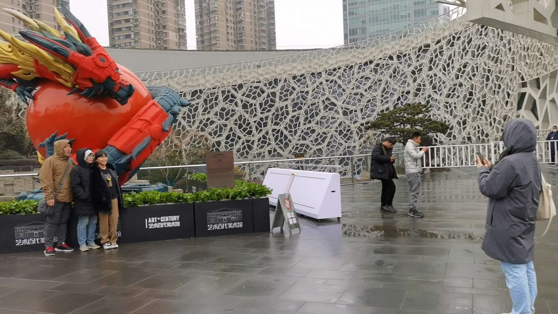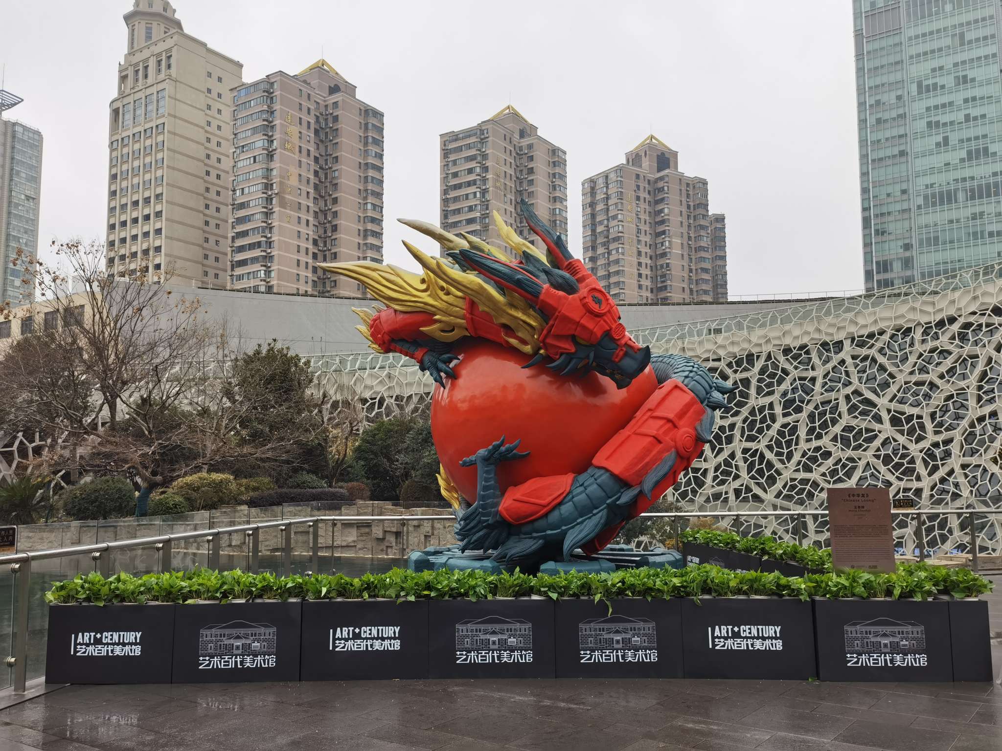 作为活动首季度的重磅展品,身披铠甲、盘萦巨珠、高达5米的“中华龙”装置在上海自然博物馆门前格外引人注目,不时吸引市民驻足打卡。“龙行龘龘。红色为主的龙非常喜庆和帅气。”对着“中华龙”,市民王小姐拍下了好几张照片。