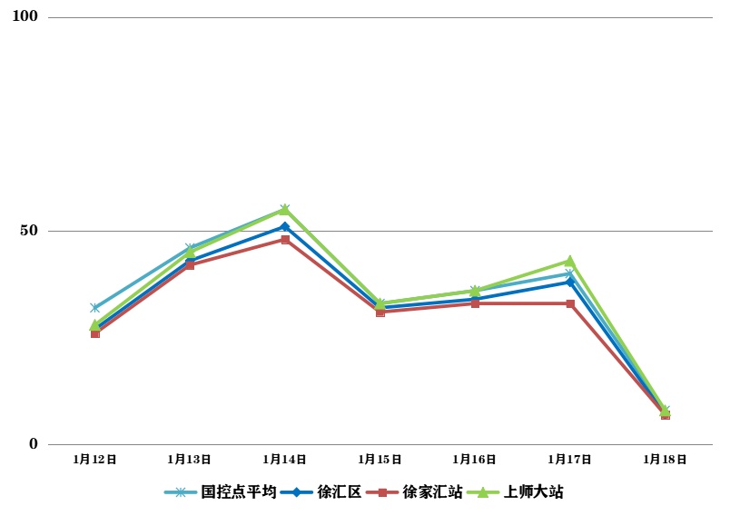2024年1月12日—1月18日,徐汇区大气环境质量报告如下所示: