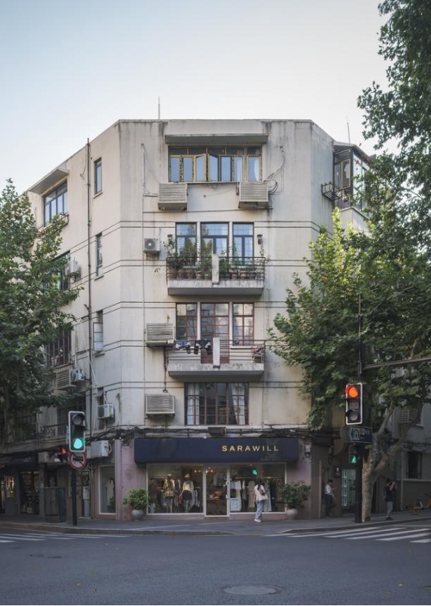 在衡复历史风貌区的街巷中漫步,转角处总有一些形态各异的公寓建筑,它们夹在两条街巷之间,每次都会给人带来不一样的惊喜。