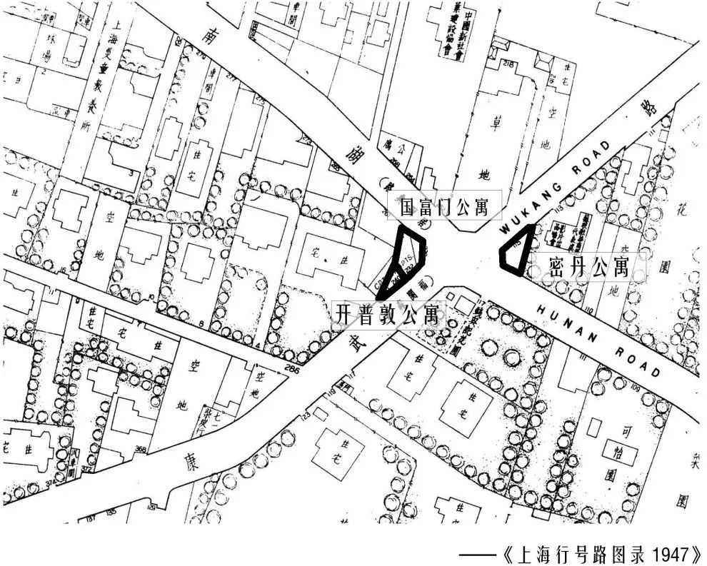 走到武康路与湖南路的十字路口,与密丹公寓遥相对望的便是两座摩登转角公寓——国富门公寓和开普敦公寓。