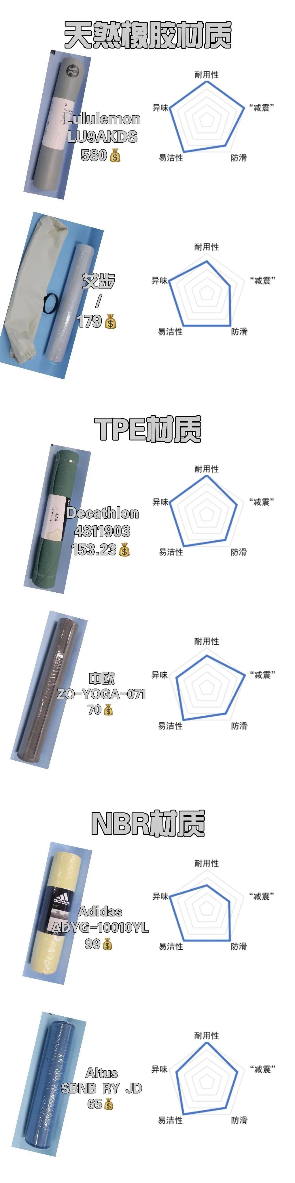 越来越多材质各异的产品呈现在大众的视线中,本次选取了30款不同品牌的瑜伽垫进行测试,详见↓