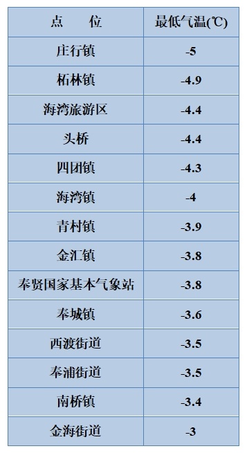 有气象历史记录以来(奉贤国家基本气象站,1961-2023年)1月日最低气温的最低值排名前十: