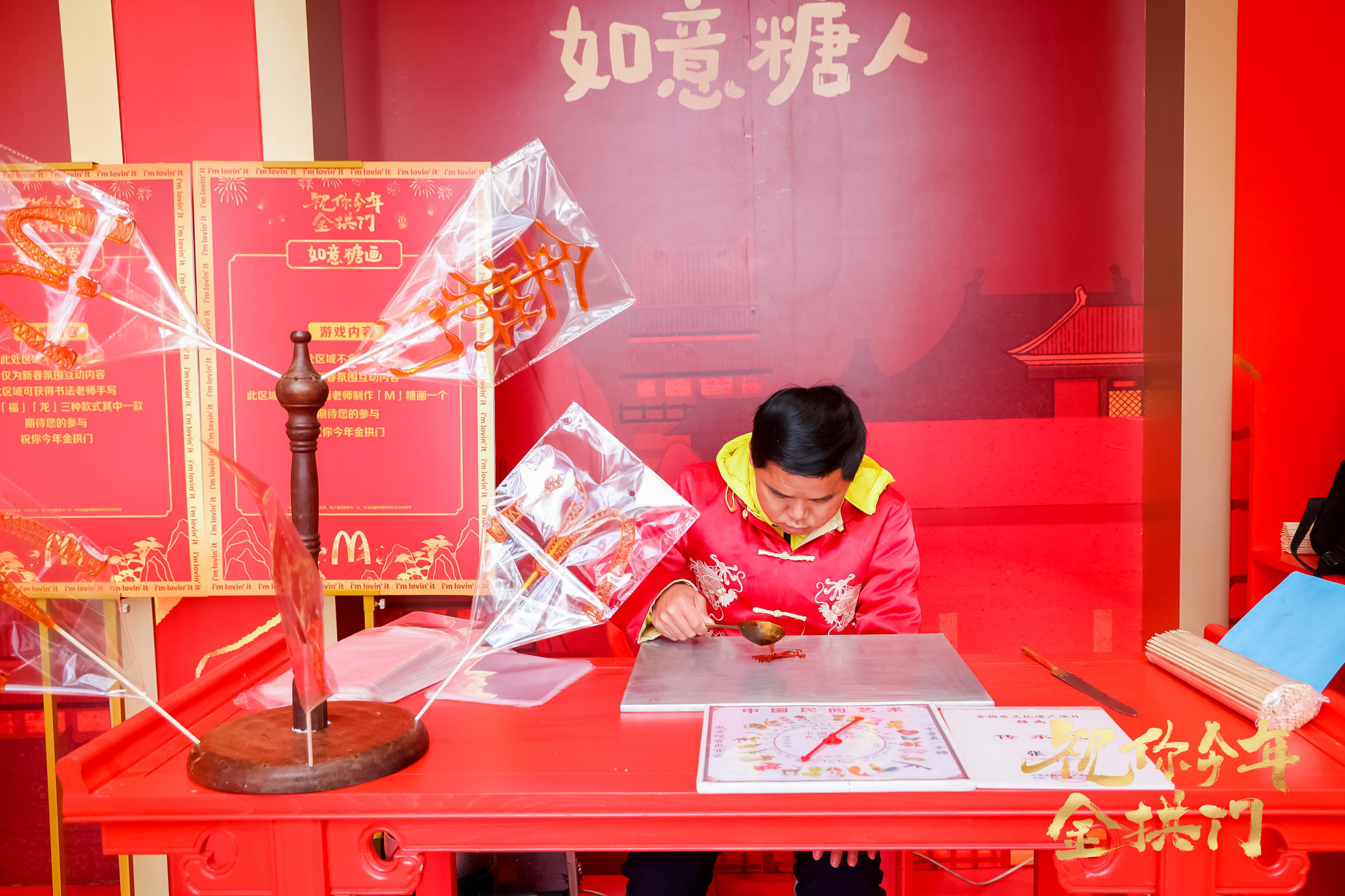 记者在现场看到,该活动以传统中式风格打造,集美食赏味、民俗文化和创新互动于一体。精致的空间内,共设有“阖家金福”“金榜题名”“金玉良缘”“日进斗金”四个互动区域,为市民游客分别送上关于学业、爱情、家庭和财富上的新年祝福。场地中标志性的金色拱门和许愿树,也成为众多粉丝竞相合影的热门打卡点。