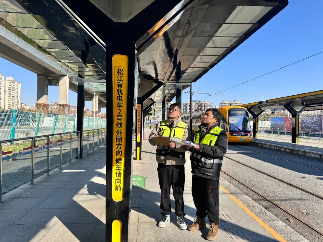 1月23日上午,记者前往松江有轨电车基地,看到工作人员正对运营线路轨道、车站、闸机、电梯等关键设施设备开展现场查看,针对临时用电、消防安全、作业安全、运营保障系统等关键点开展隐患排查工作。
