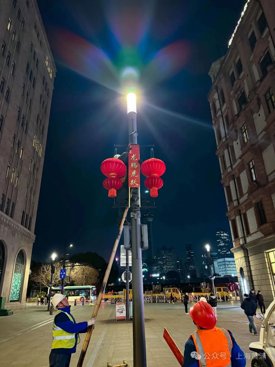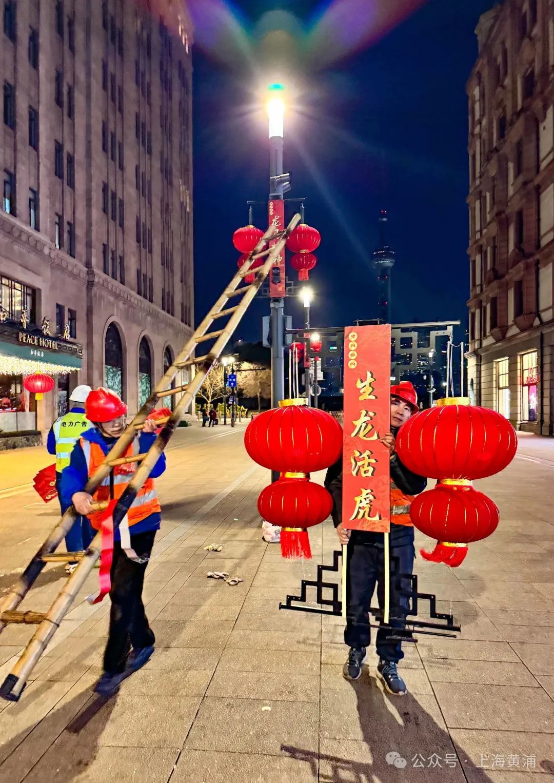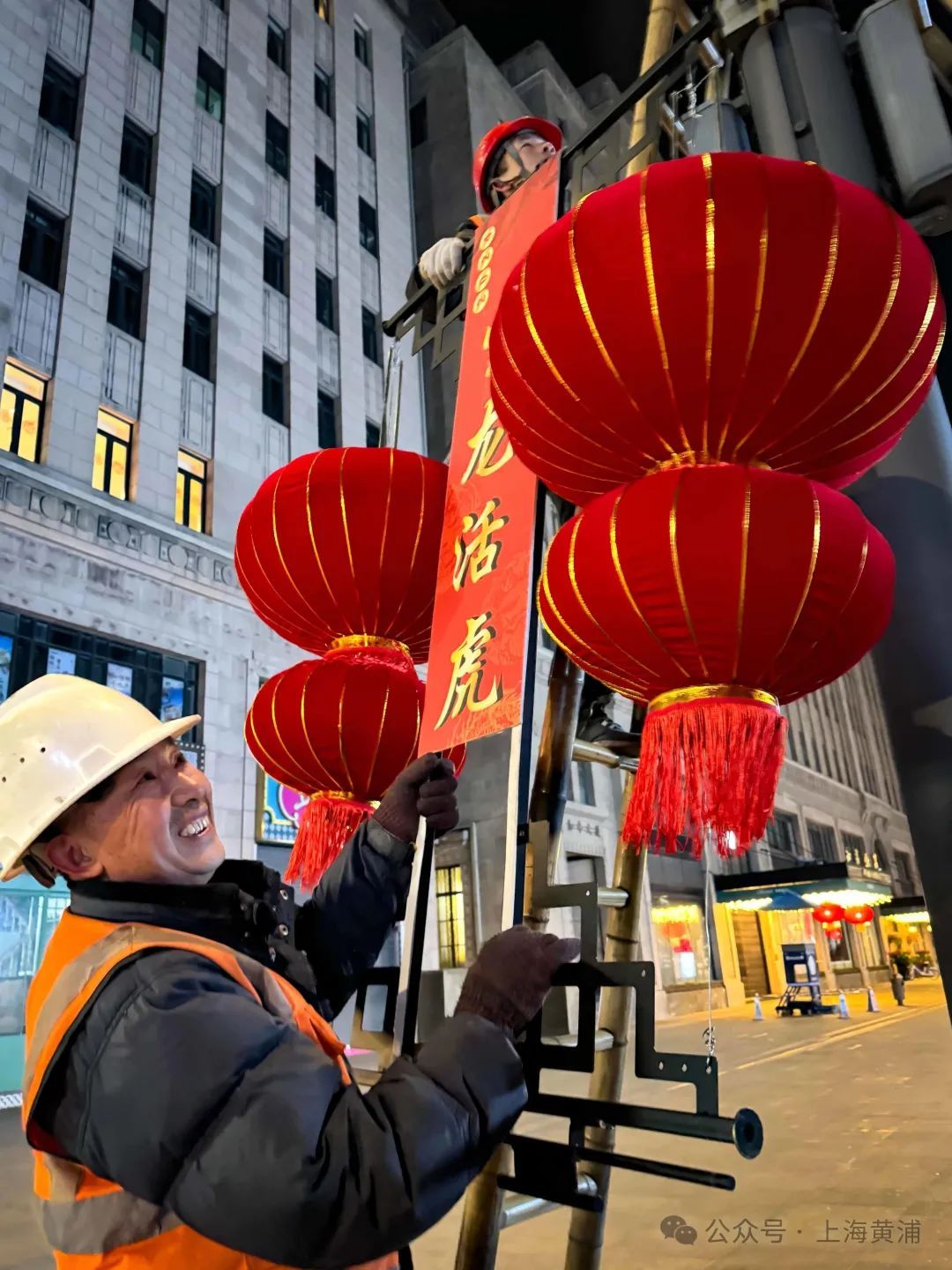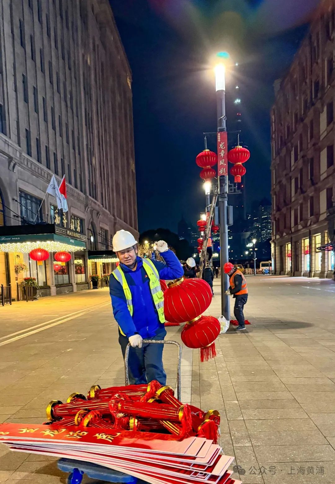 这是工人师傅经过一夜的辛苦劳作,呈现出来的浓浓“年味”。