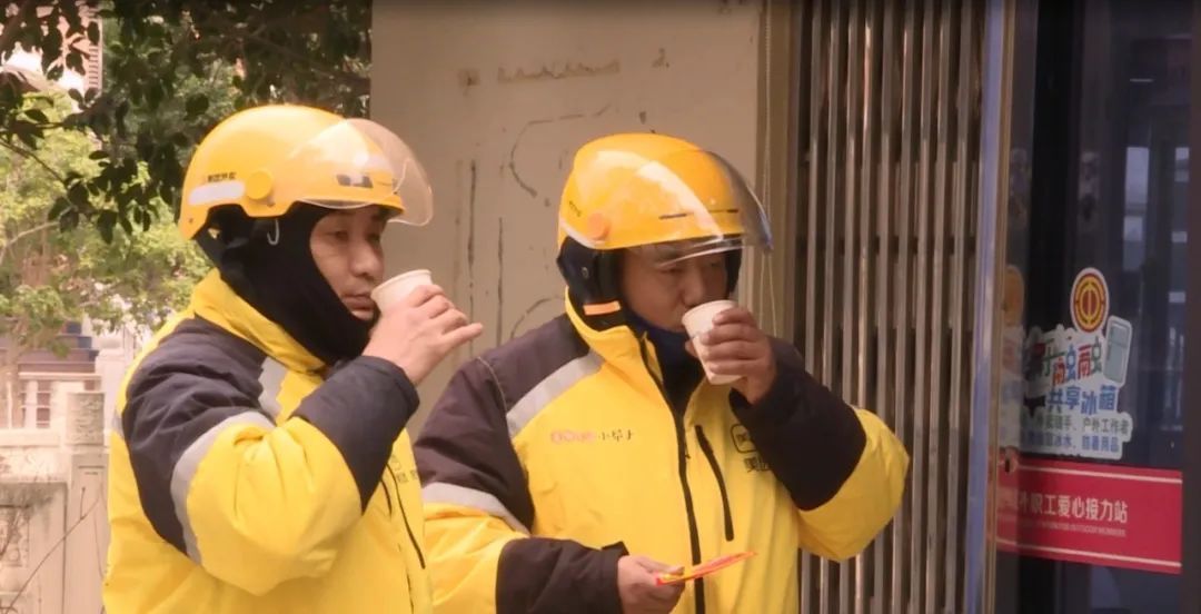 “今天本来就气温比较低,零下五度了,比前两天都气温低,所以说跑单特别难,想到这里来休息一下。”本是普通的一天,但让外卖小哥意外的是,停电瓶车的时候工作人员直接端了姜茶,还邀请他进去休息一会,“感觉挺温馨的,身体暖和点又可以继续跑单了。”