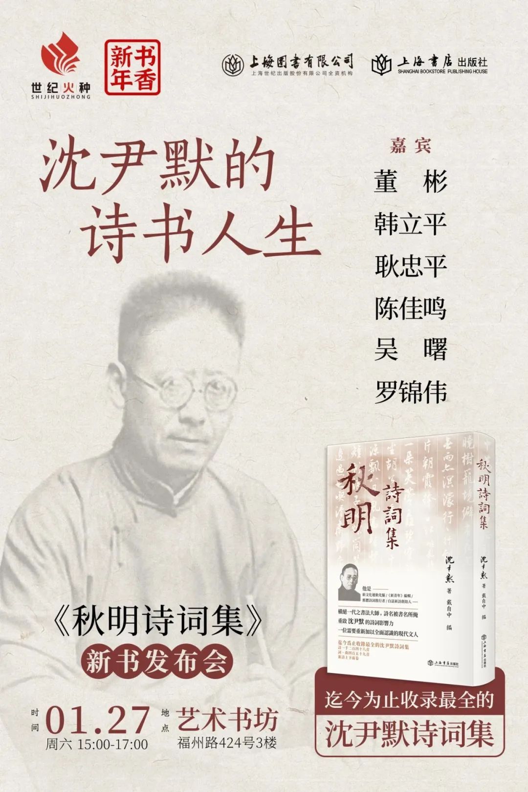 活动预告 | 沈尹默的诗书人生——《秋明诗词集》新书发布会