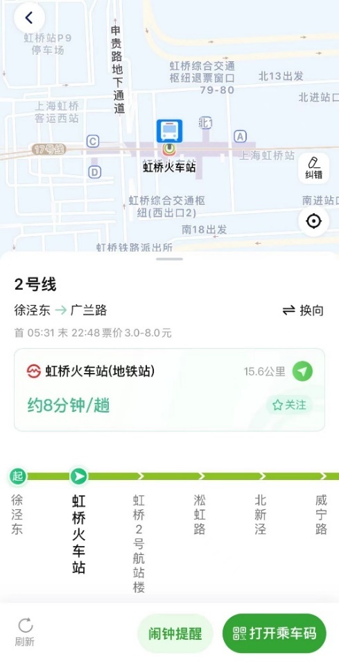 除交通信息查询外,专区还支持公共交通的乘车服务。用户在公共交通详情页点击“打开乘车码”,将跳转至“随申码”(上海城市出行码)界面,支持上海市域内公共交通“一码通行”。