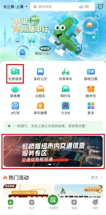 “虹桥枢纽市内交通信息服务”专区入口示意↑