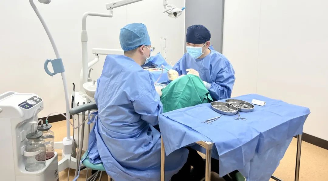本次手术由李国光副主任医师和方明医生共同完成,是该中心首例种植牙手术。手术历时约30分钟,术中微创操作,患者全程无痛,术后无不良反应,整个诊疗过程舒适、安全、精准。经术后检查种植体位置精确。
