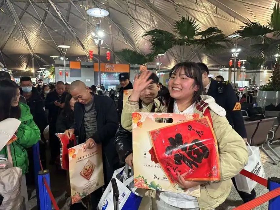 此外,车站开展丰富多彩的活动,各站区设置绿植景观,悬挂红灯笼、中国结,向旅客赠送春联和送福字。上海虹桥站在候车室内开展国乐汇演,并向现场参与互动活动的旅客赠送礼品。