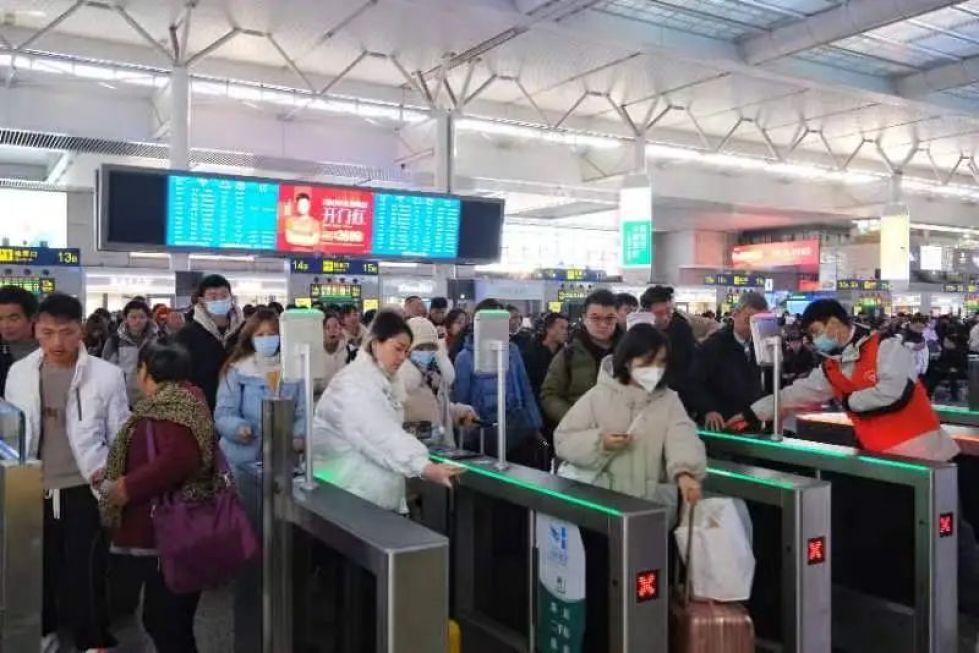 春运首日,铁路上海站客流主要发往云贵、江西、湖南、湖北等地区,当日春运客流与周末客流叠加,客流明显上升。当日该站增开至云贵、安徽、川渝、苏北等方向列车16列,从车票预售情况来看:云贵、东北、湖南等方向车票较为紧张。具体列车开行情况请以车站公告和中国铁路客户服务中心12306网站公告为准。
