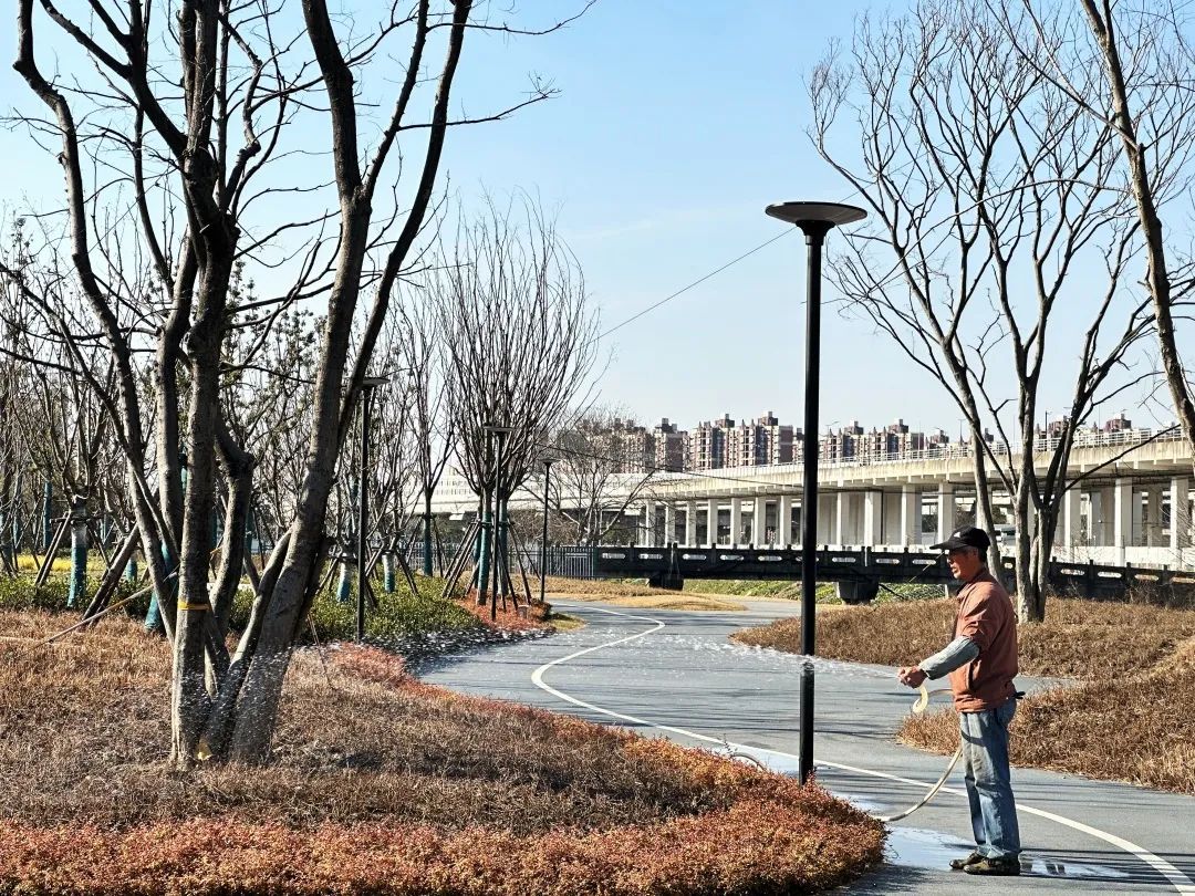 诸陆西路滨河绿地是总建筑面积达2.6万平方米的“社区绿廊”,目前基本施工完成。负责绿化养护的工作人员表示,“目前绿化已经基本完工,接下来河道两侧绿化计划开春后全部种植完成。”