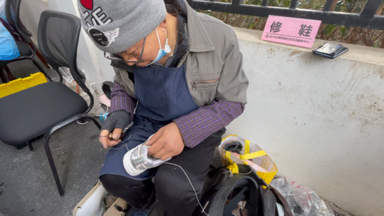 小修小补摊位前也人丁兴旺,不少居民拿着家中需要修补的物件请志愿者帮忙修理。居民王阿姨将家里的两双破损运动鞋拿到修鞋摊位,志愿者端详一番后就穿针引线快速修补起来,不一会儿的功夫,裂开的鞋面又恢复了“原样”。“现在小修小补外面很难找到,没想到志愿服务直接送到小区里,鞋子修好还能穿,真的很实惠。”从志愿者手里接过修补过的鞋子后,王阿姨满意地说道。
