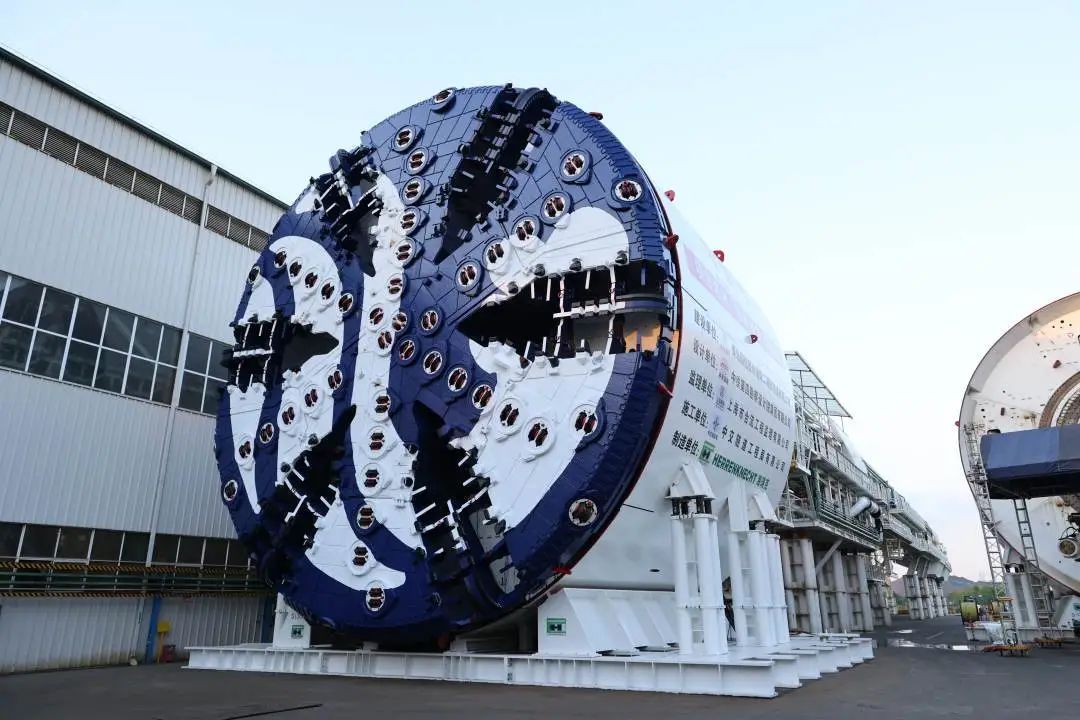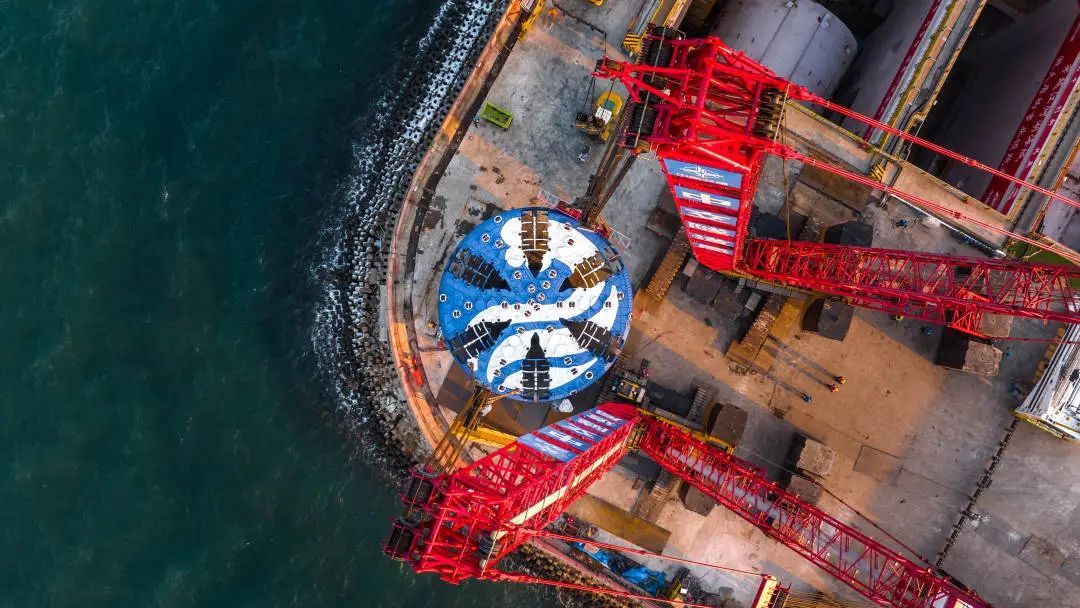 针对地质条件复杂、高水压、长距离硬岩掘进等施工重难点,项目团队联合业内权威专家在刀盘形式、刀具类型、耐压耐磨能力等方面开展专题研究,量身制定适应长距离硬岩地层的超大直径泥水平衡盾构机“深蓝号”。盾构机开挖直径15.63米,整机机长165米,重量5300吨,并配备伸缩式主驱动、伸缩式开挖仓监视等智能系统。