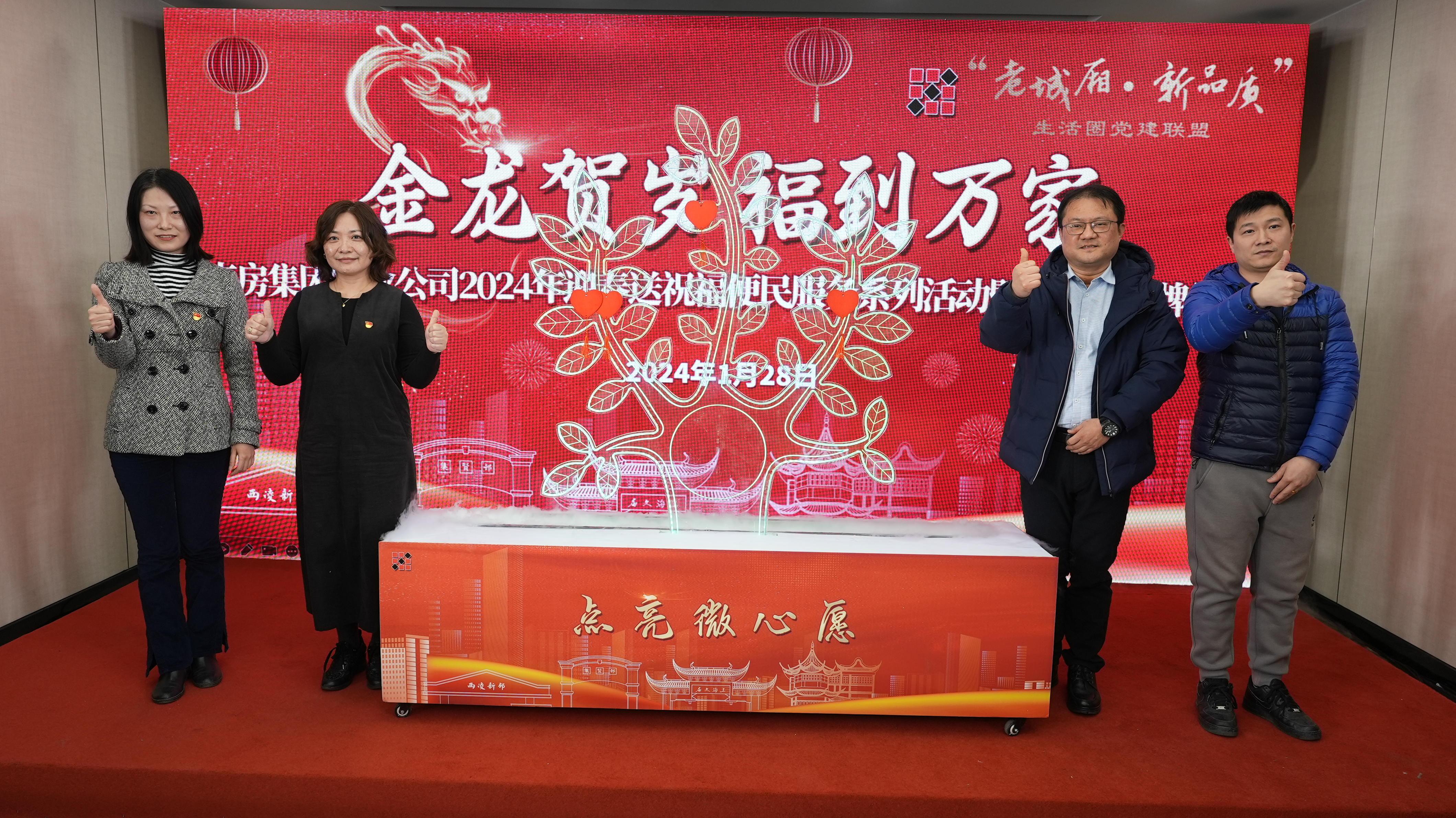 送“福”迎春、圆“梦”祈福、认领“微”心愿、启动“新”服务……离龙年春节还有不到两周时间,1月28日下午,“金龙贺岁 福到万家——南房集团物业公司2024年迎春送祝福系列便民服务活动暨服务站揭牌仪式”举行。