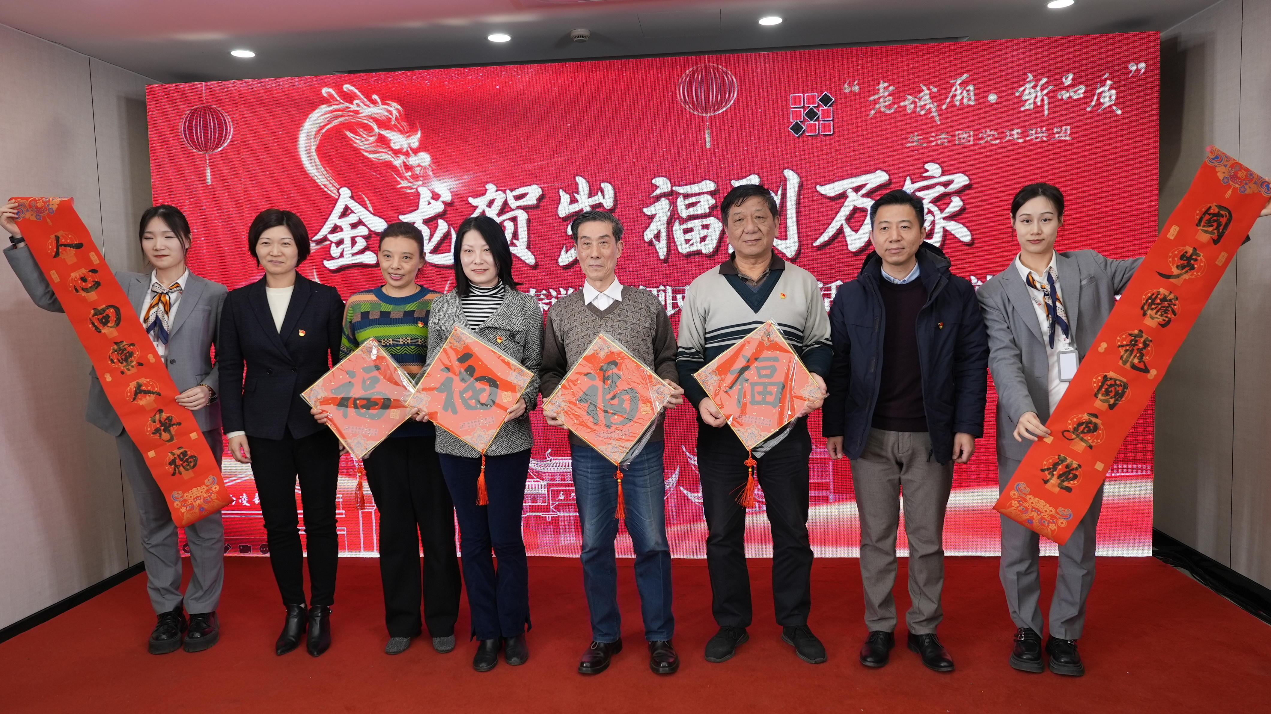 活动现场,喜气洋洋,墨宝飘香。区房管局、南房集团、豫园街道、半淞园路街道、小东门街道、老西门街道相关负责人分别为老城厢居委干部、居民代表等送上了承载着新一年美好祝愿的“福”字和春联。