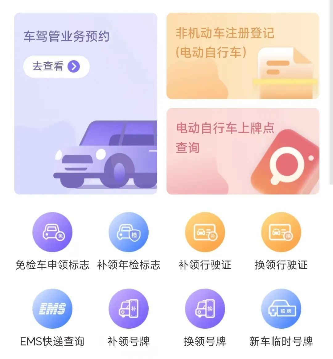 如果你想为爱车“换户口”、“换颜色”等,还可以使用车驾管预约业务,涵盖机动车、非机动车等范围,提前预约取号,避免现场排队等待。