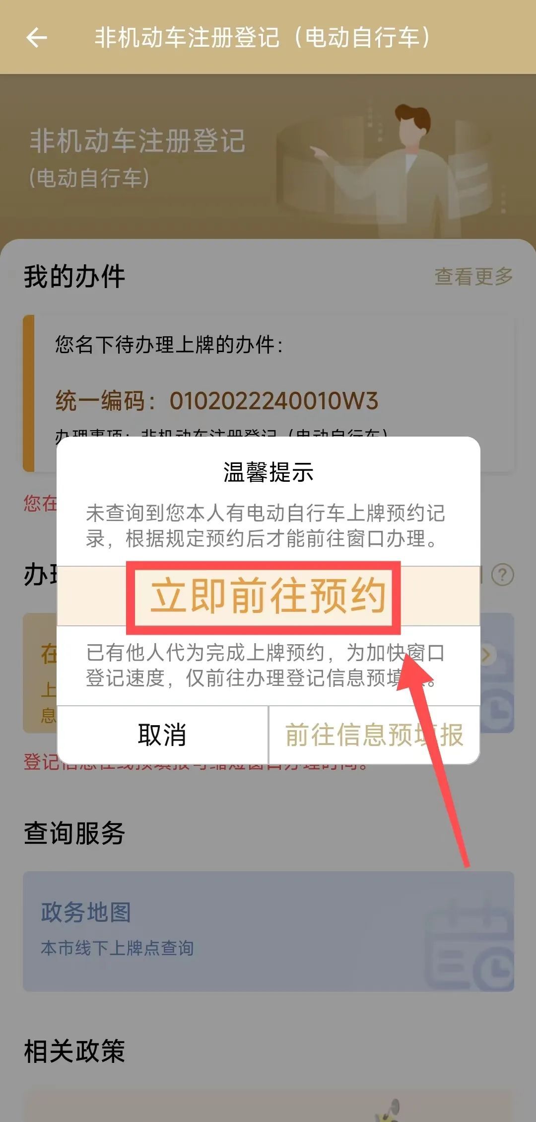 第八步:回到“非机动车注册登记”首页,可点击“已预约信息查询”确认已预约信息。