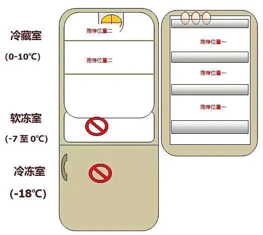 1.冰箱门架区域:此处温度相对较高、位置固定,可以防止冷藏药品冷冻失活;但需注意:为了防止开关冰箱门引起振动,药品周围可以用东西塞紧。