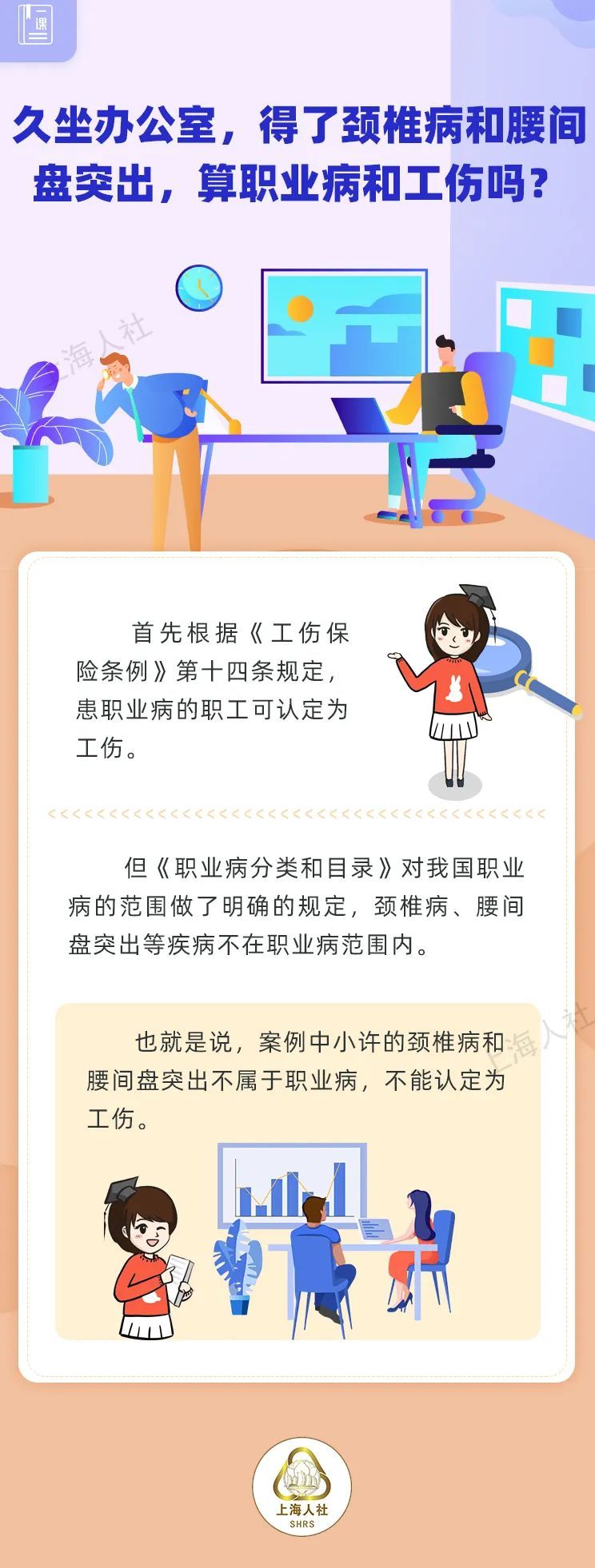 小许是一家电子元件公司产品部的检测员,长期久坐加低头工作,常常脖子疼、腰疼。最近,经检查,他得了颈椎病和腰间盘突出。小许与公司HR沟通,询问像自己这种情况,是不是算职业病,能不能认定为工伤呢?