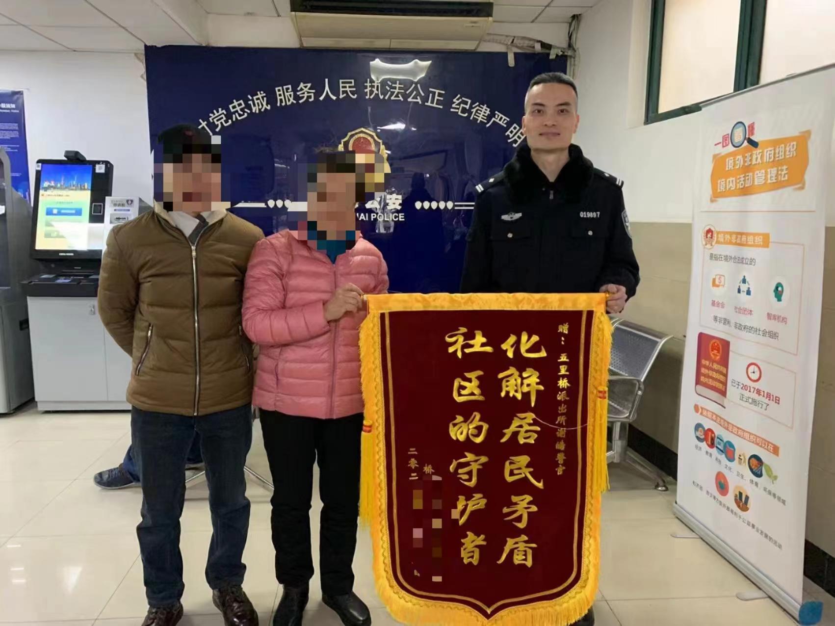 1月29日,姚先生夫妇俩对五里桥派出所社区民警谢皓的全力帮助表示赞许,为其送上锦旗表达自己由衷的感谢。