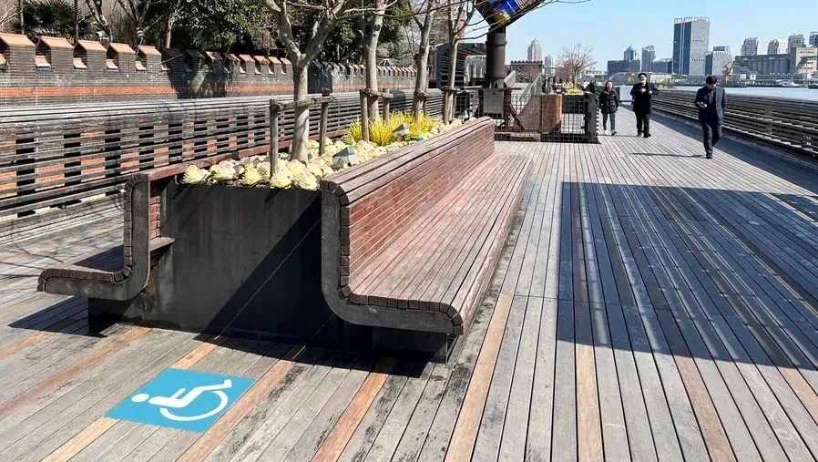 “无障碍”并非只让残障人士和老年人受益。携带大件行李、使用婴儿车、短期受伤的市民,同样是无障碍设施的高频使用者。比如,杨浦滨江的坡道建设,不仅可以让乘轮椅的市民方便地到达亲水平台,同样也给推婴儿车的家长带来便捷。