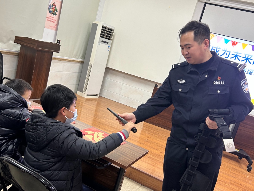 唐警官与同学们简单描述了自己的日常工作,并与他们谈起自己未来的职业理想,有的想成为警察、教师,也有的想成为科学家、宇航员,去探索这个奇妙世界。唐警官告诉同学们有了目标就要朝着目标努力前进,要努力学习,并希望有一天能看到大家加入警察的队伍,共同守护一方平安。