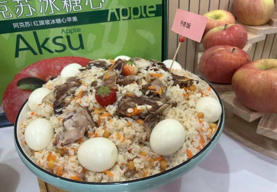 来自新疆维吾尔族的萨拉木·买买提带来的是手抓饭和烤馕。手抓饭里添加葡萄干、羊肉等,十分入味。烤馕则融合了鸡蛋、牛奶、洋葱、清油等,又香又有嚼劲,给上海市民龚女士留下了非常深刻的印象。