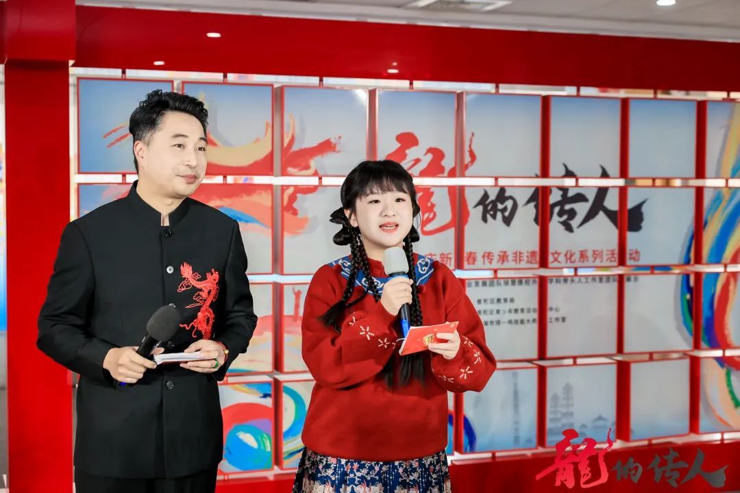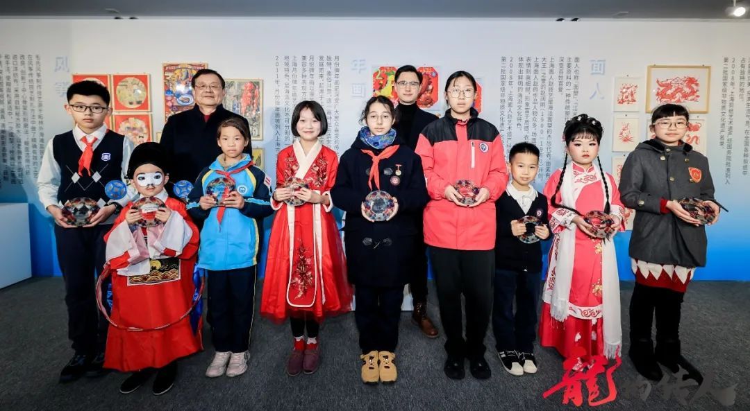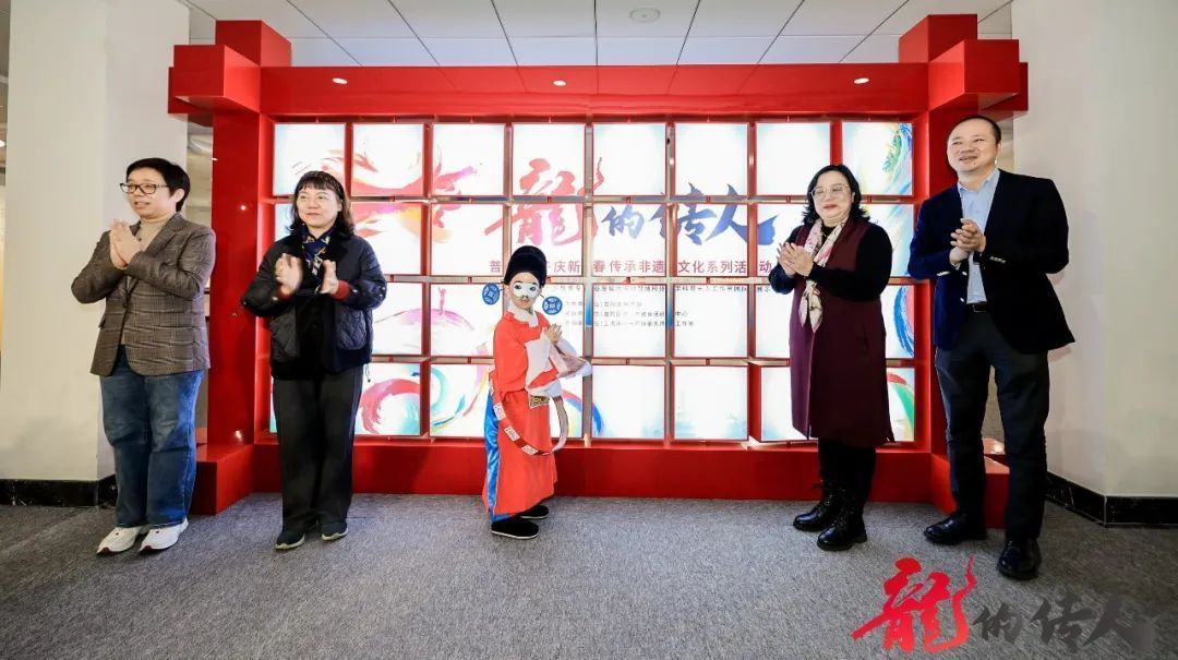 与会领导共同启动“龙的传人”非遗文化作品展,点亮普陀区中小幼学生们才华横溢的作品,凸显非遗文化的魅力和独特之处。