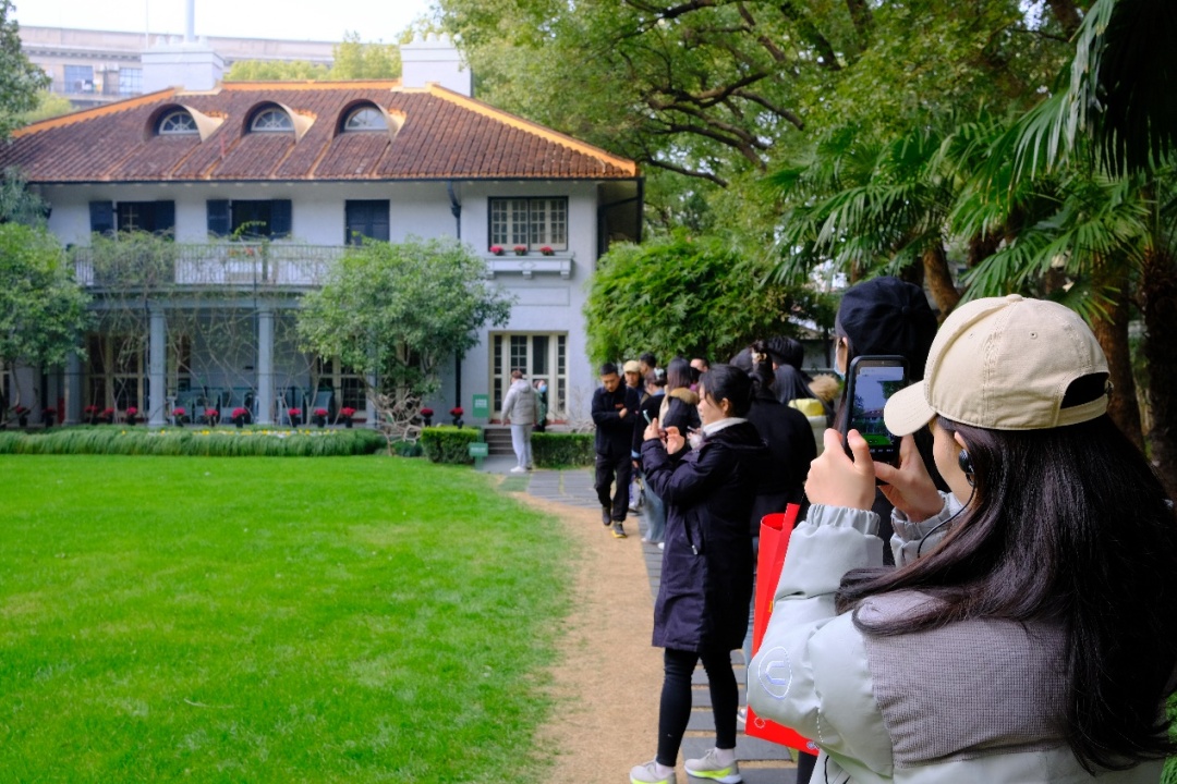 “宋庆龄同志是爱国主义、民主主义、国际主义和共产主义的伟大战士。她为党为国为民、为人类进步事业立下了永不磨灭的卓著功勋。”伴随着“宋游记”活动讲解员朱逸飞的讲解,“宋游记”的首批团员在宋庆龄故居开启了City walk的第一站打卡点。