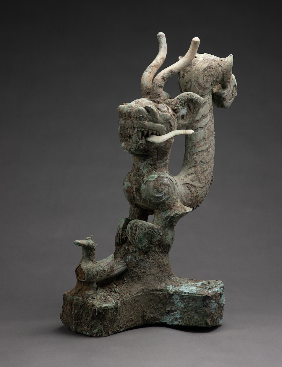 青铜虎头龙身像