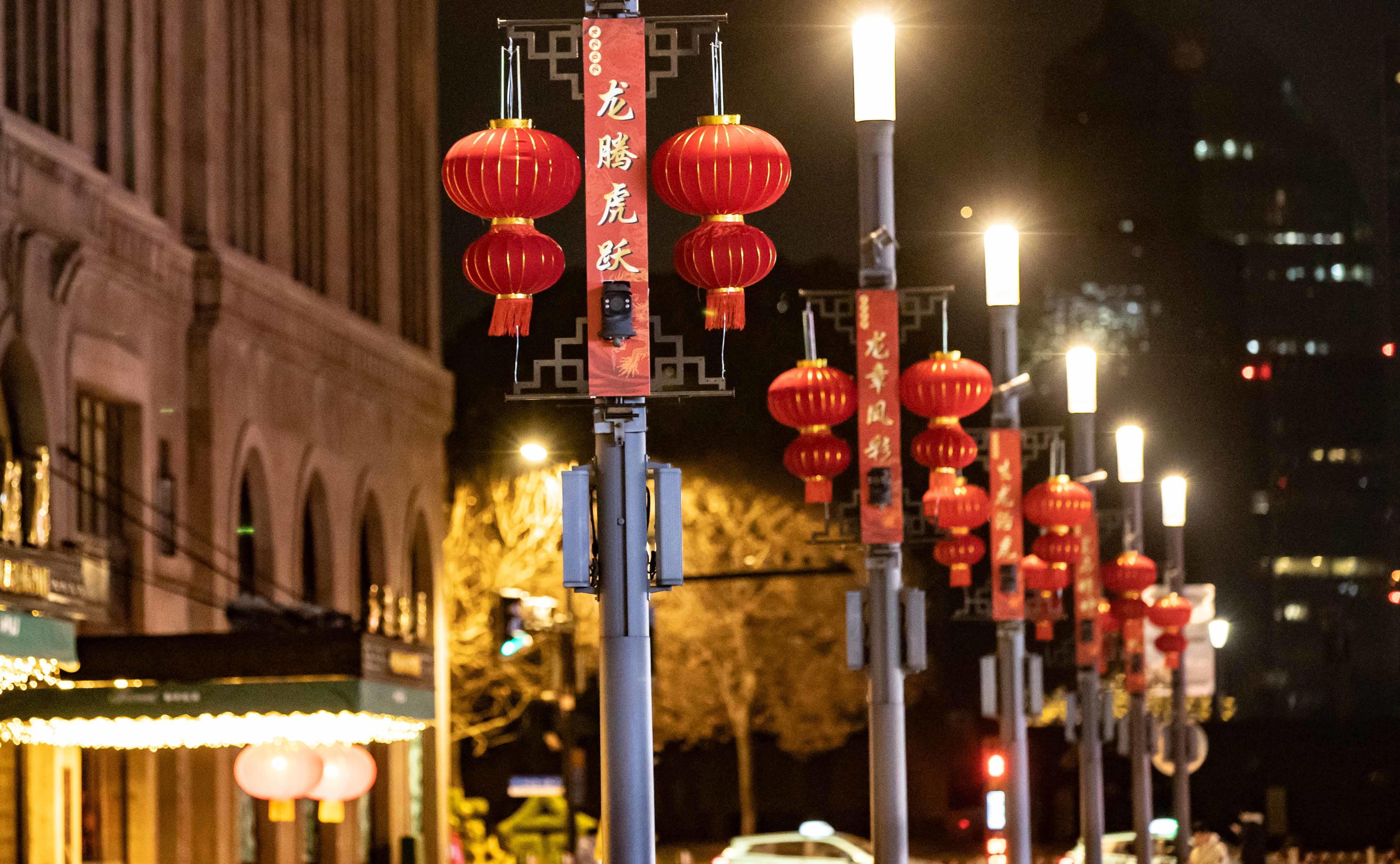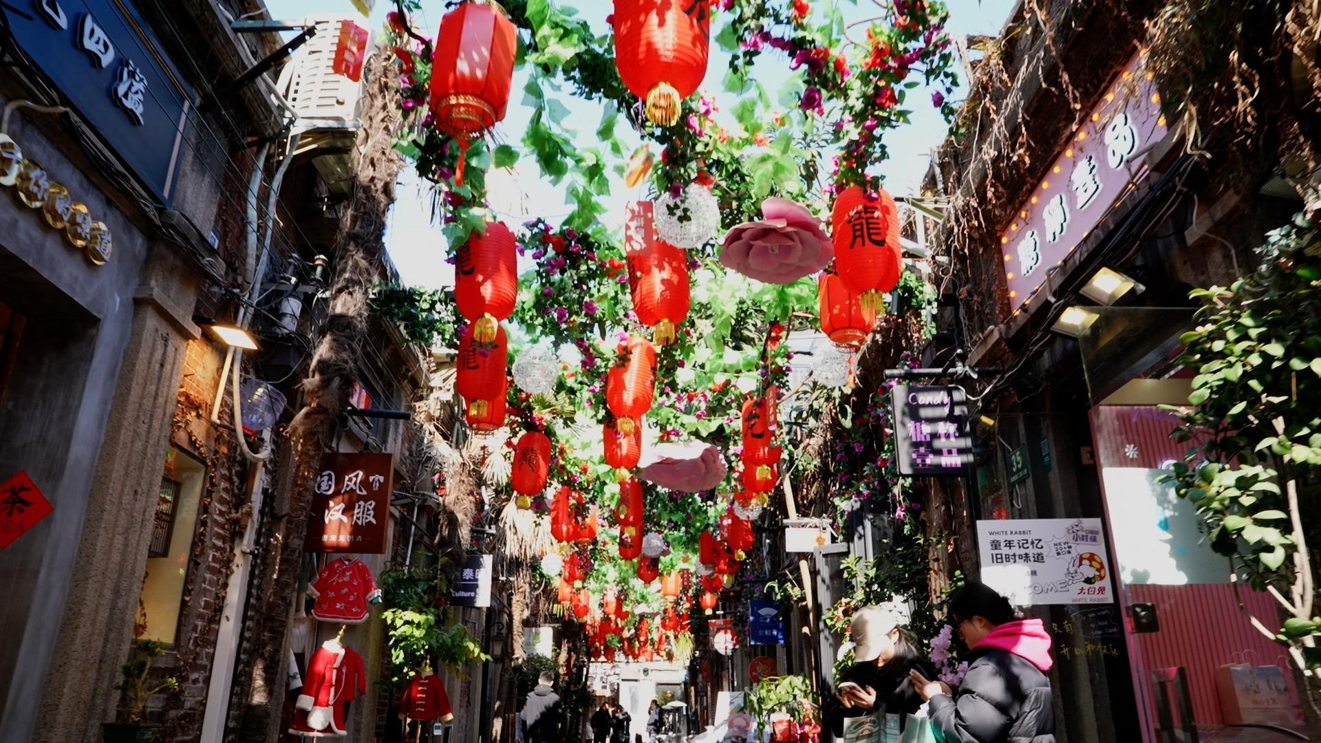 红灯笼、红春联,龙年春节期间,南京路和外滩区域沿途综合杆上穿上了节日的盛装。一条条“金龙”红红火火“盘踞”在道路两旁,成为了一道年味十足的亮丽风景线。
