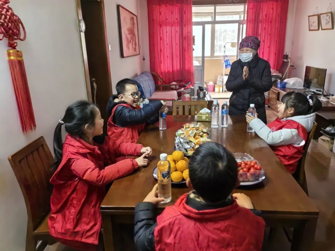 探访过程中,亲子志愿者们为老人们送上新鲜采摘的蔬菜和福字,并与长者亲切交谈,关心老人们的身体状况以及生活状况。离别前,老人也向志愿者们表达了不舍和感激之情。