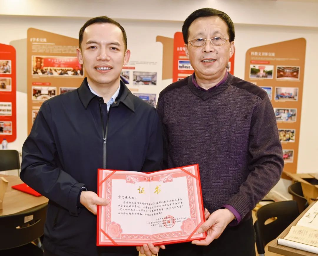 市台胞服务中心向书法家代表致感谢状
