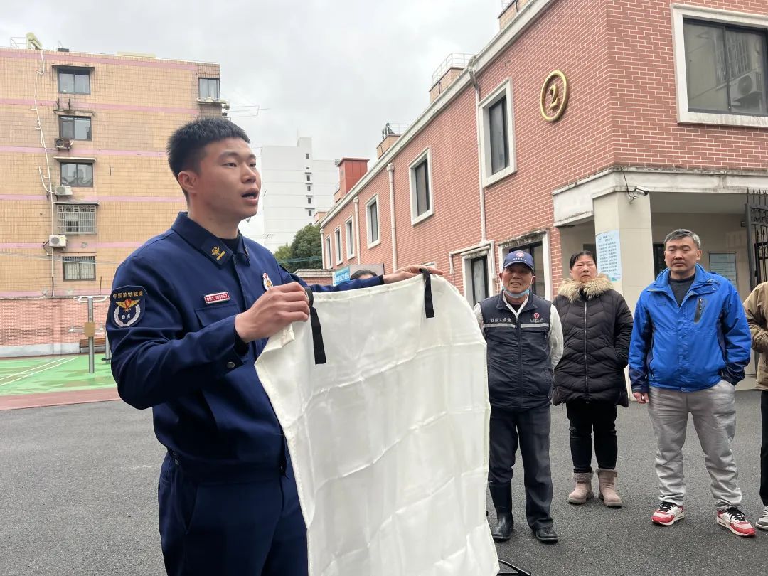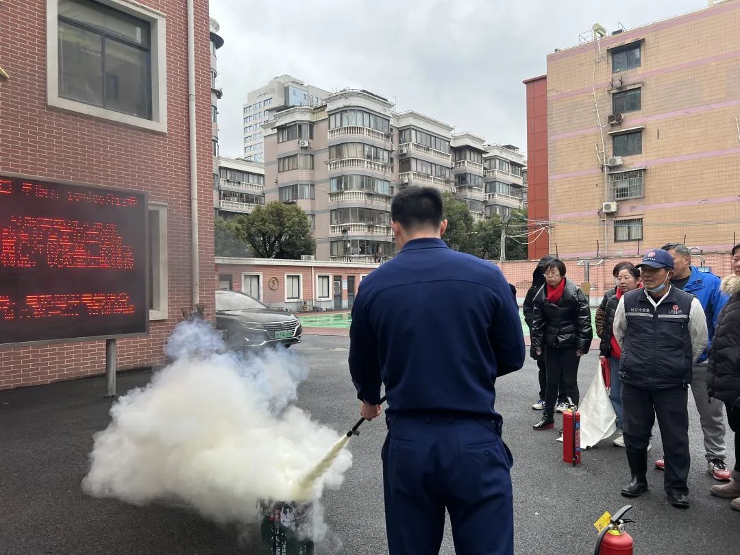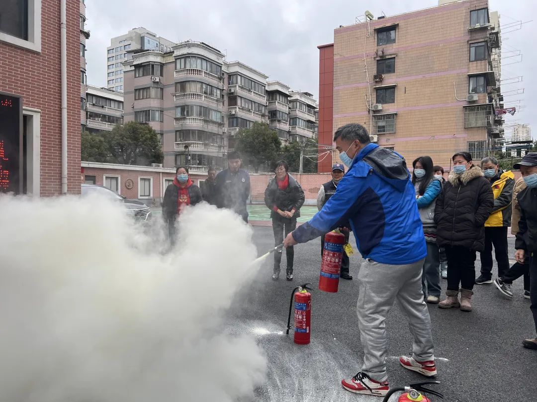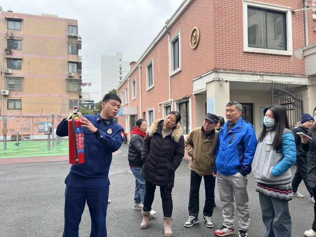 在后续开展的消防疏散、消防器材演练中,来自闸北消防救援站的消防员针对火灾预防、火情辨识、自救逃生等内容进行重点讲解,并进行消防器材操作示范,现场明火演练灭火实操,手把手教社区居民如何使用灭火器。
