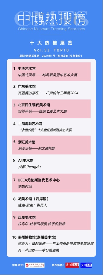 在最新一期中国博物馆热搜榜“十大热搜展览(美术馆及当代艺术)榜单”中,“中国式风景——林风眠吴冠中艺术大展”位居首位。