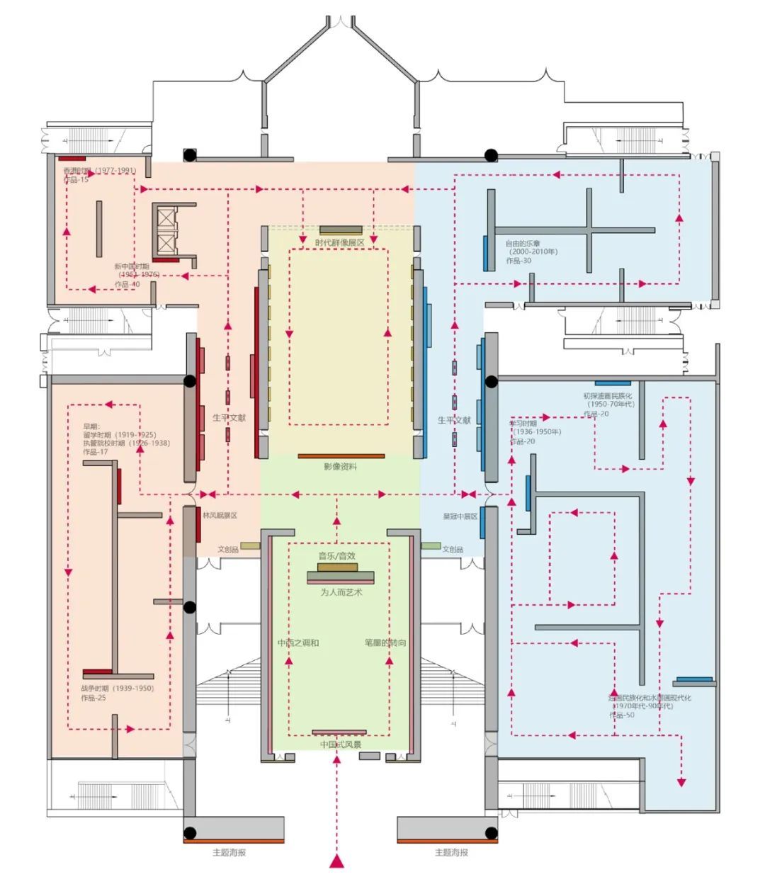 展区位置左右对称,意在同时呈现两位艺术巨匠重要题材的比对展示与专题研究。