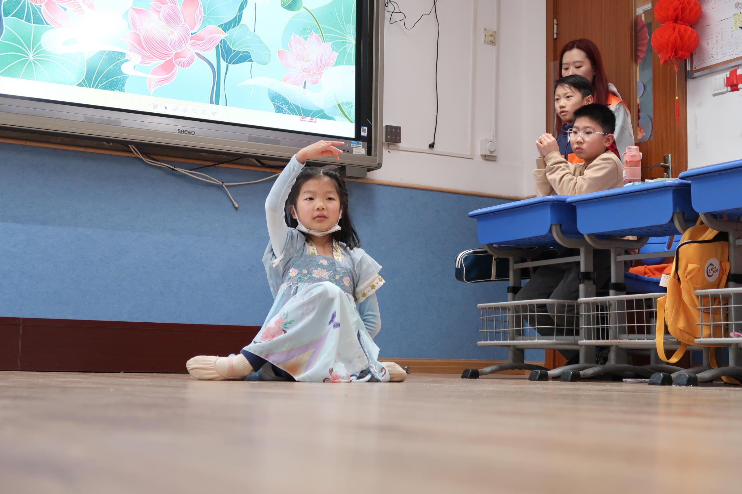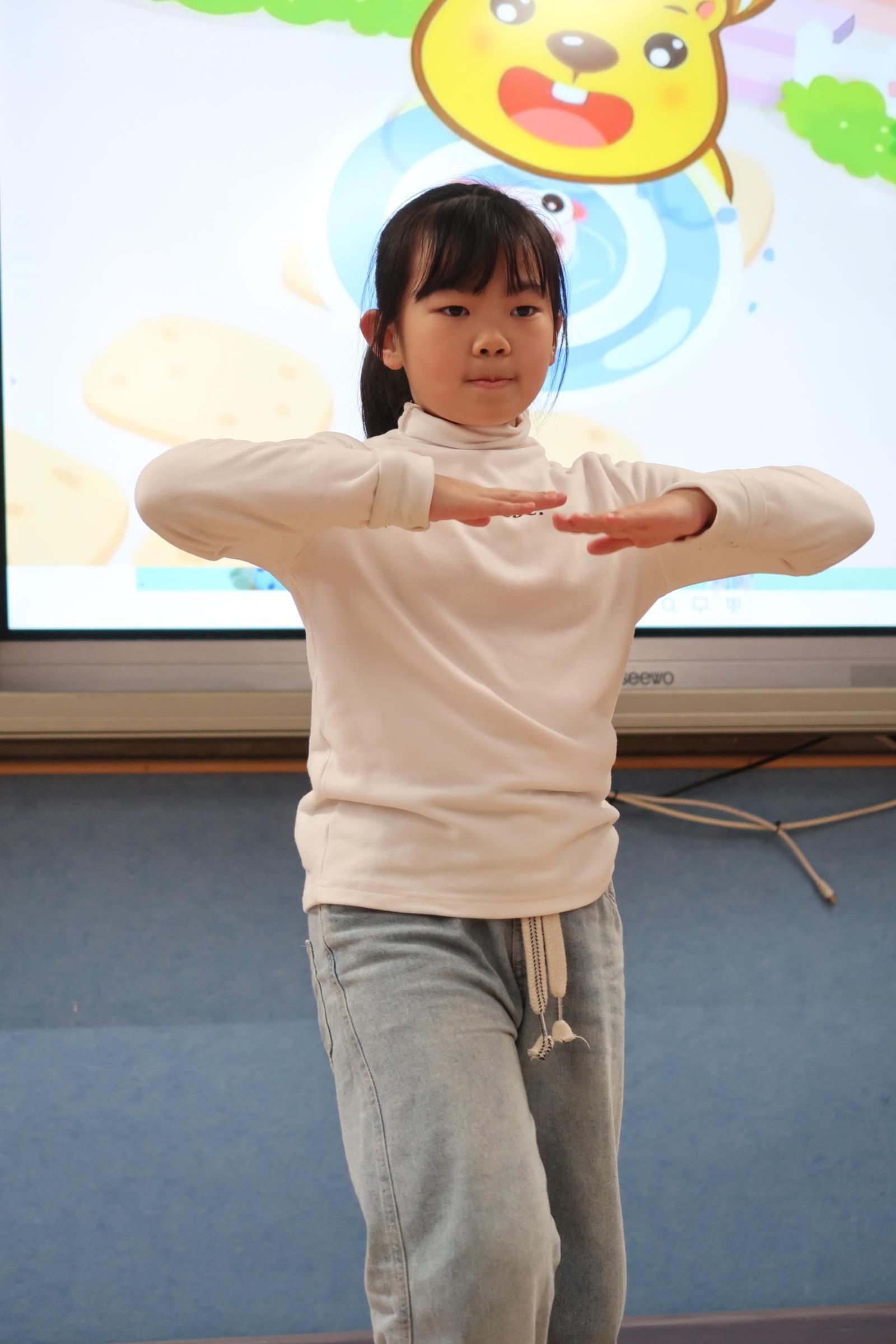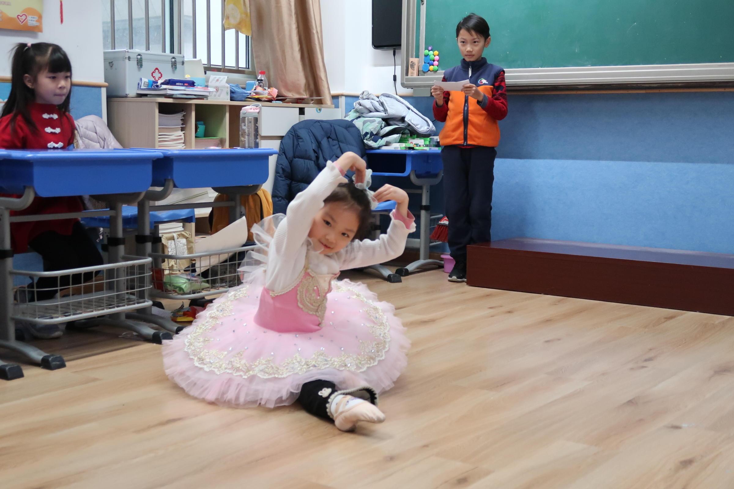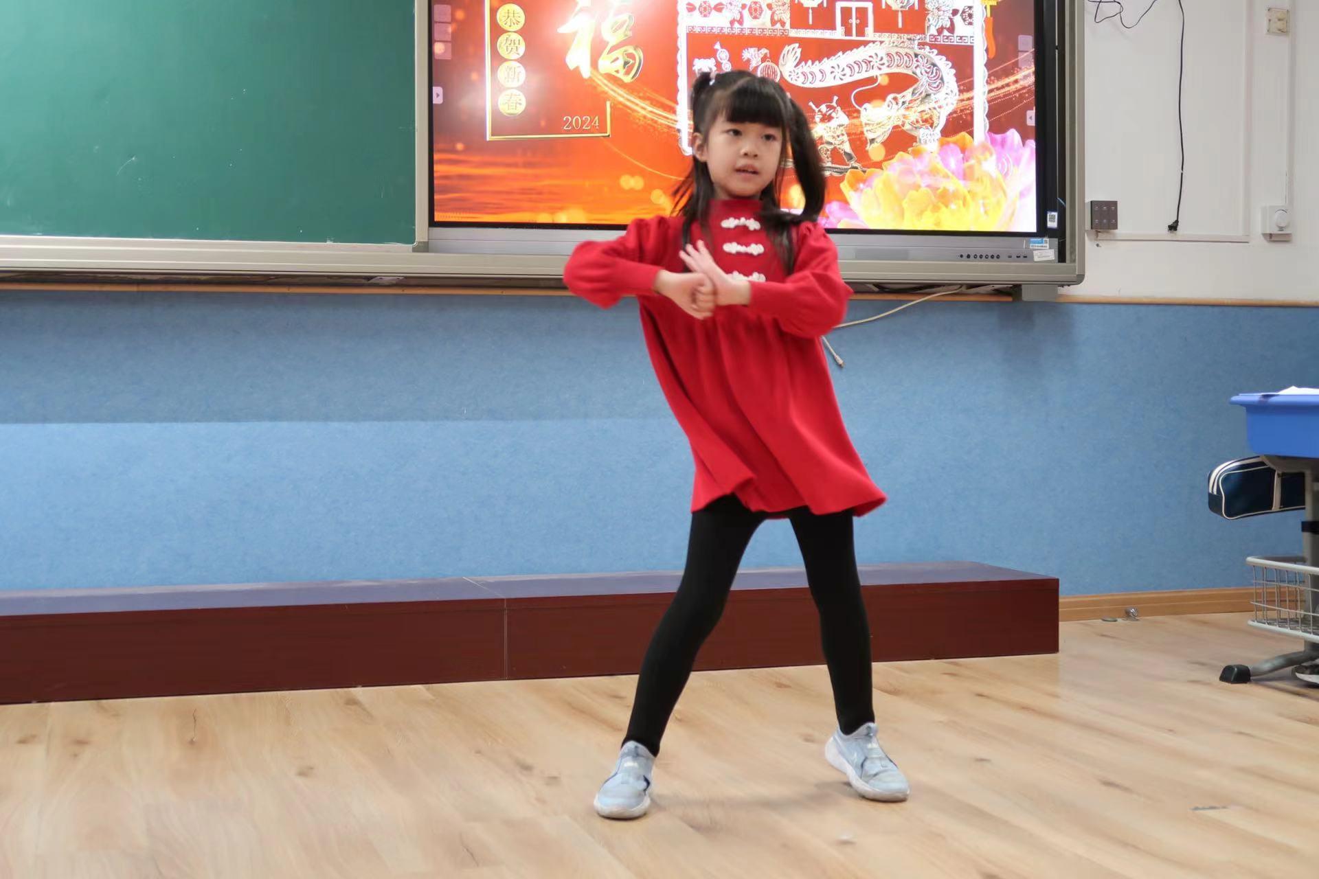 玉兔辞旧春华启,龙腾新春气象新。积极向上的郁好同学经常在课堂中举手发言,热爱弹钢琴的她还是个舞蹈小能手。她带来的《发财发福中国年》活跃了现场的气氛,熟练的舞姿,酷帅的造型,获得了孩子们的阵阵掌声。