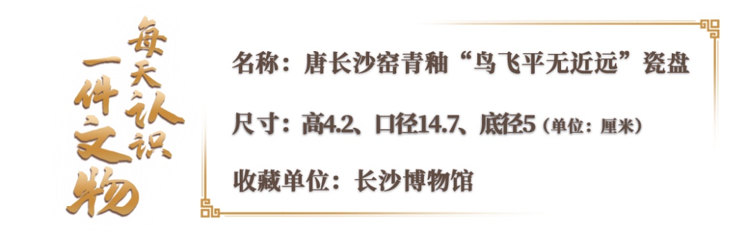 唐长沙窑青釉“鸟飞平无近远”瓷盘