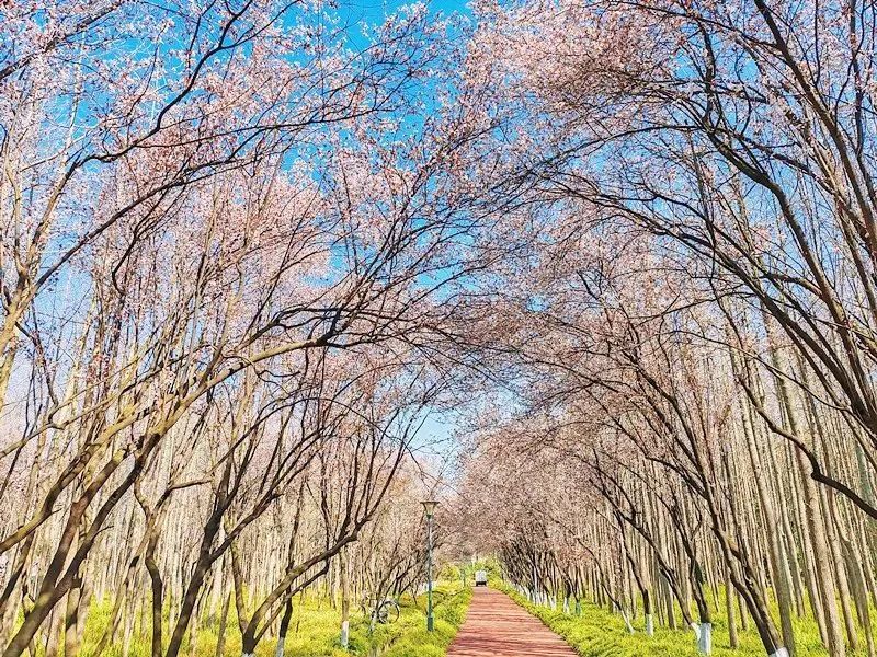 伴随立春而开的是梅花,长宁的苏州河滨河步道、天会HQ都是赏花的好去处。粉红色的梅花开得自在、烂漫,它是报春使者。 外环林带生态绿道的紫叶李观赏大道 外环林带生态绿道的紫叶李 二月兰 立春过后,天气逐渐变暖,树木逐渐抽芽、开花,长宁逐渐进入“乱花渐欲迷人眼”的盛景,梦幻浪漫的樱花,粉色唯美的紫叶李、桃花相继开放,长宁的绿地、公园里将处处都是好风光。 中山公园的樱花 百年中山公园的春景更是美如画。春天的长宁,适合呼朋唤友,去踏青、春游,去喝茶、聊天,去感受春风拂面,也让春风吹进你的心里。