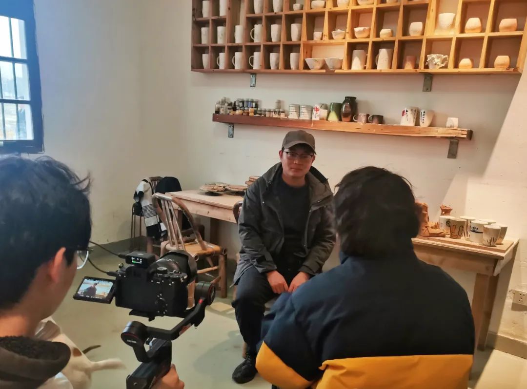 调研中,同济大学师生调研团先后前往隐禾泥舍、“美厨玩家”等品牌文创项目点位,了解腰泾村艺术乡村重点建设和实施推进情况。在隐禾泥舍,实践团访谈了陶艺工作者林永祥,深入了解他作为腰泾村引进的文艺“创客”之一,租下村中房屋建立起陶艺工作室的具体过程。在这一方“创作田园”中,林永祥不仅从事陶艺创作,还涉猎篆刻、文物修复等领域,既为乡村带来了浓厚“艺术味”,更在这里寻求到艺术创作取得突破创新的滋养。