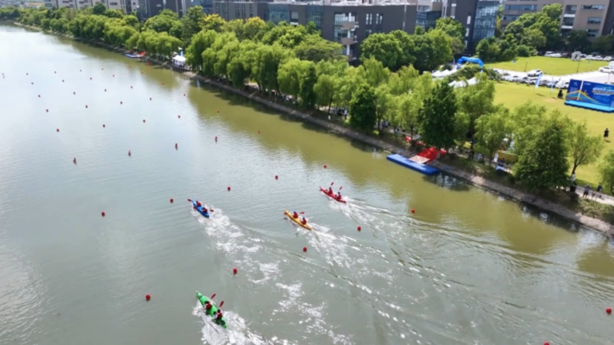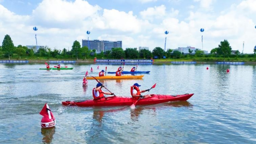 宽阔而清澈的河面为赛舟创造了有利的条件,周边企业组织团建活动,为静谧的河流带来活力与快乐,人与河流的互动也能在城市中得到充分体现。