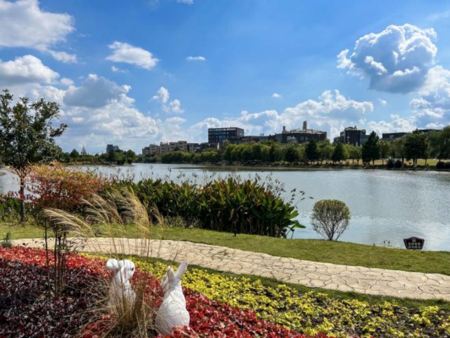 亲水平台处还增设了凉亭、小品及花箱,更加方便周边居民近水亲水,为市民慢行提供了一个好去处。