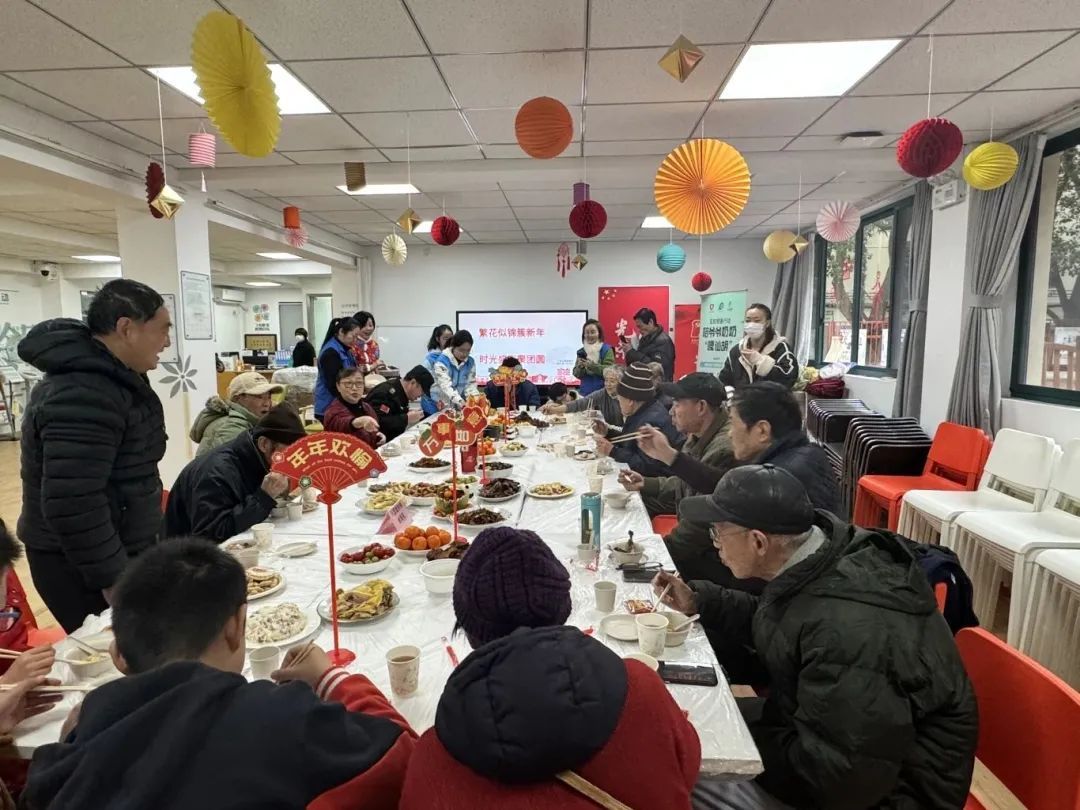 徐汇区康健街道的丁香迎春社区是全国示范性老年友好型社区。丁香迎春社区将“睦邻一家”建设作为党建引领的头等大事,分成6个网格小片区,做好对86位高龄独居老人、30位孤老等重点人群的关心关爱工作。近日,结合“陪爷爷奶奶嘎讪胡”,丁香迎春社区举办了一场别开生面的大家庭“团年饭”活动,现场喜气洋洋。