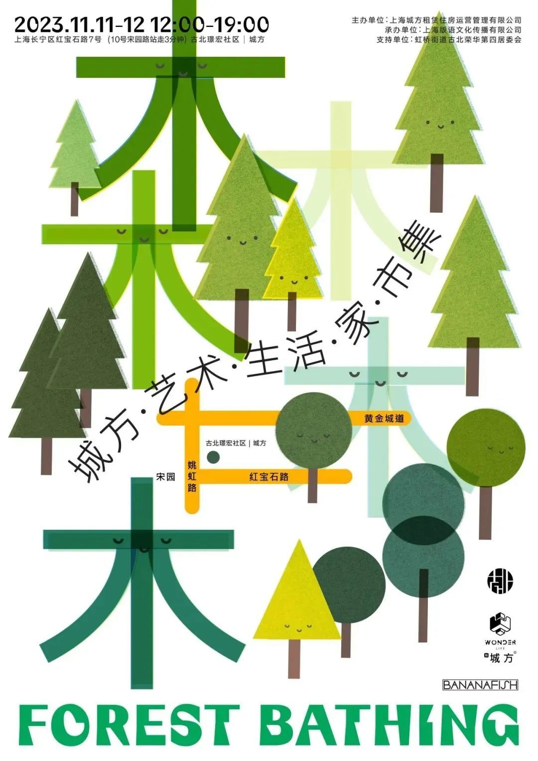 设计心语:生命的旅途精彩纷呈,我们在这片土地上共同见证播种、呼吸、创造、倾听和收获。在银杏落满街道的古北社区,设计一场犹如森林呼吸般的市集活动,在木、林、森中感受艺术生活家的美好。